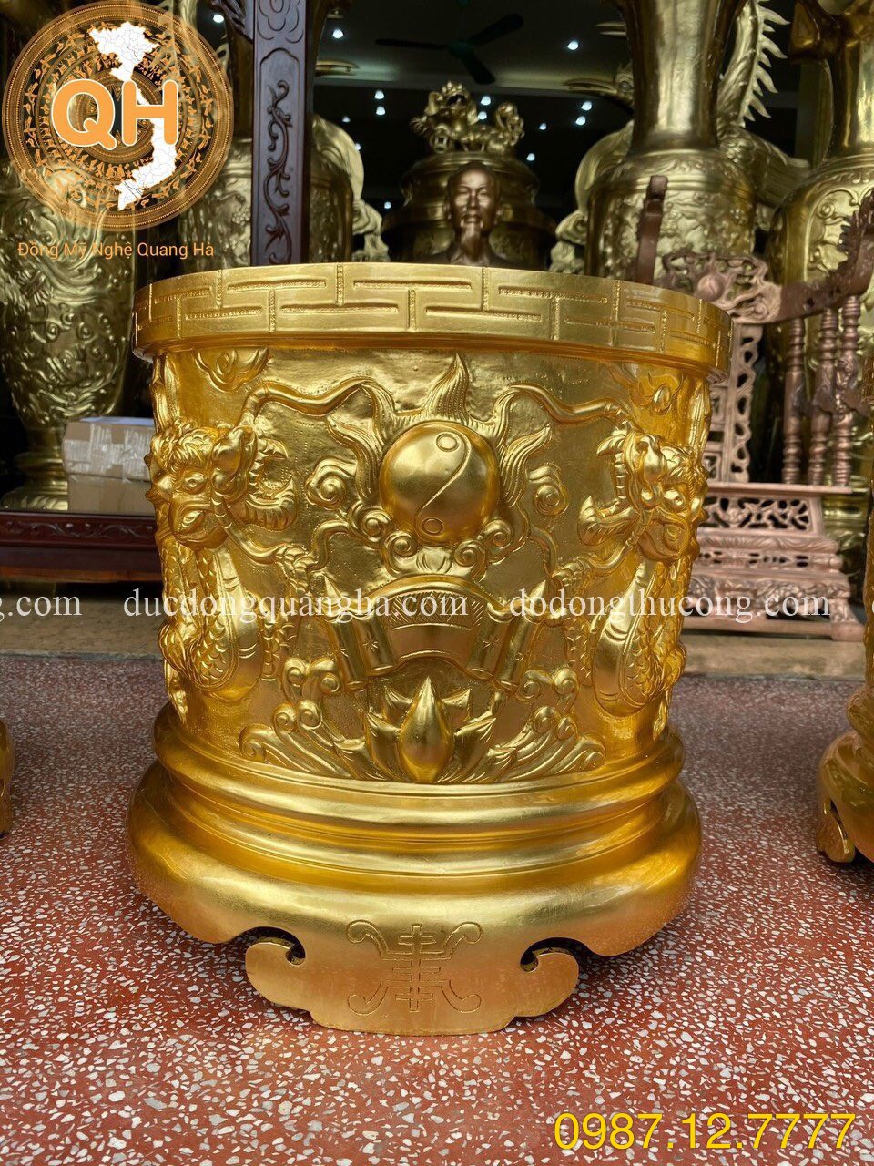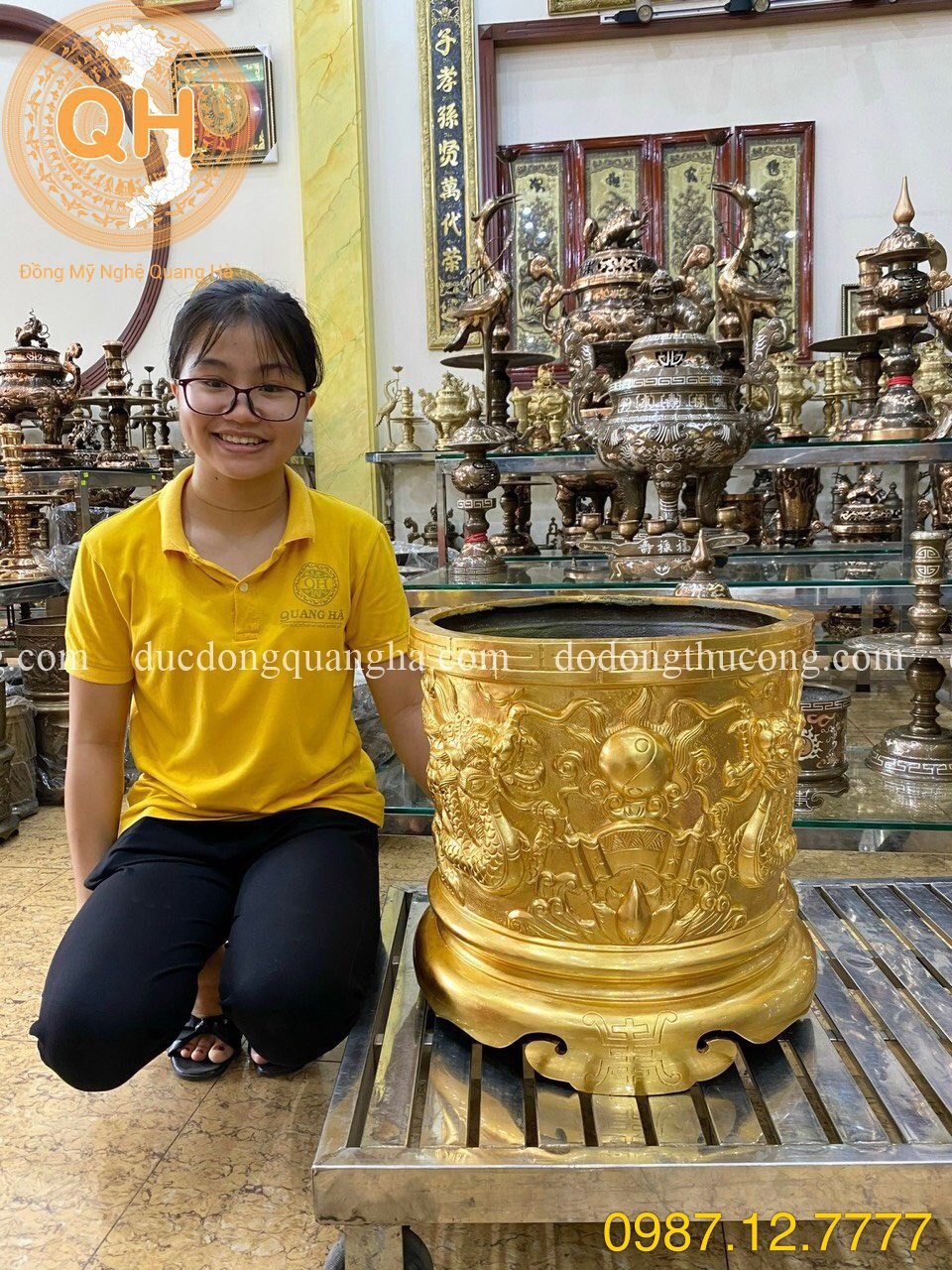 Chất liệu : Đồng đỏ nguyên chất đúc thủ công khảm vàng 9999, đồng đỏ