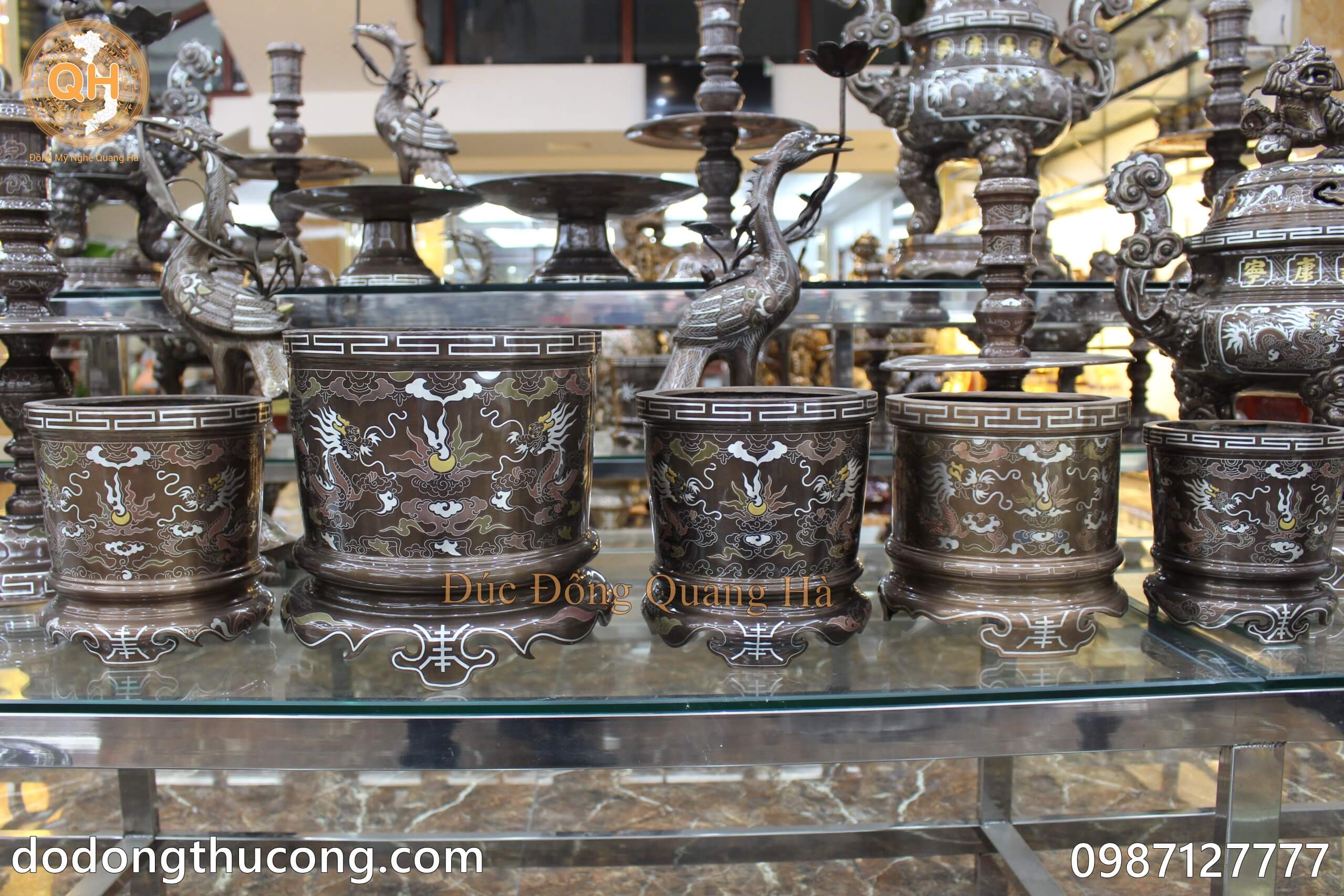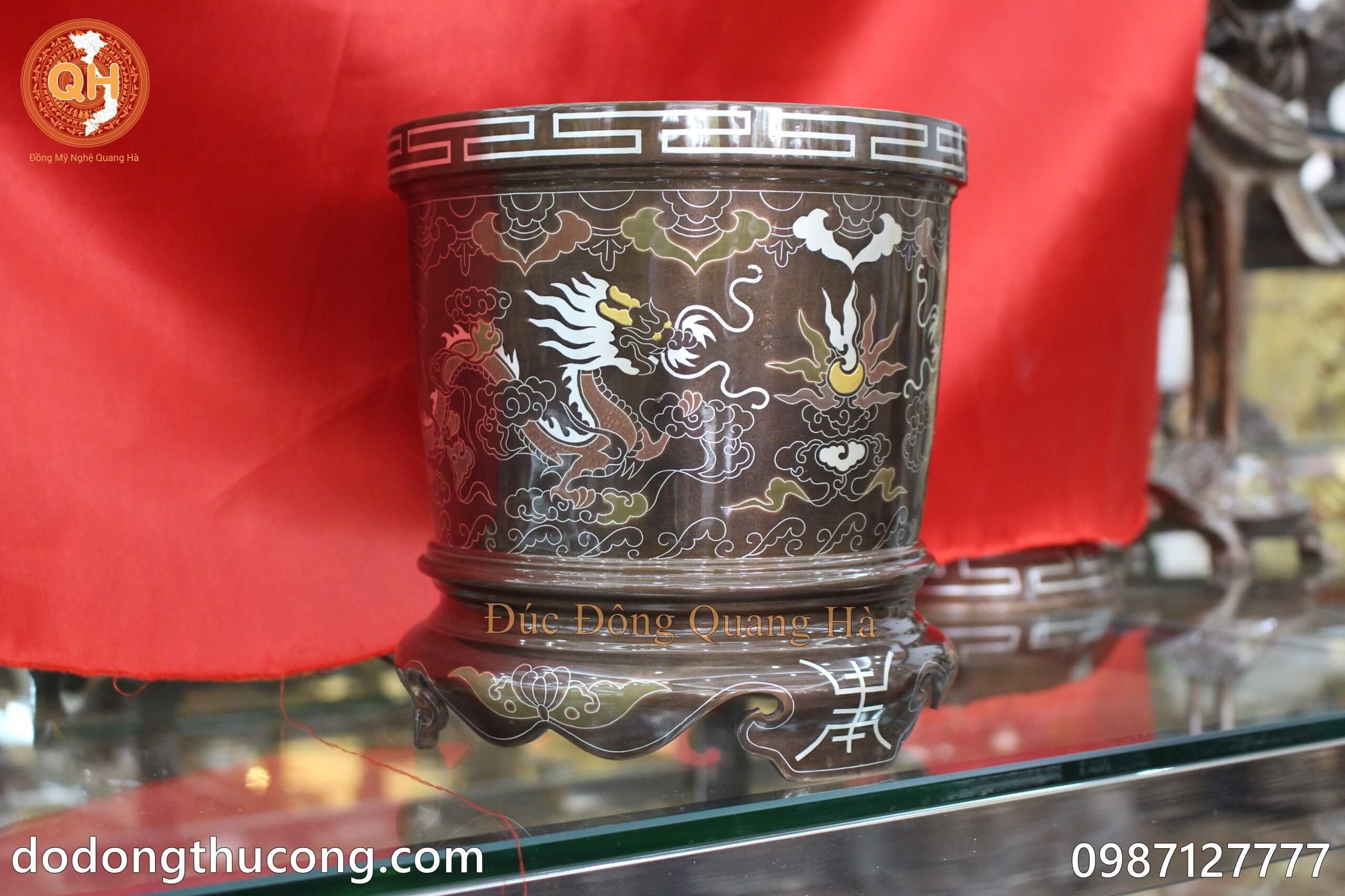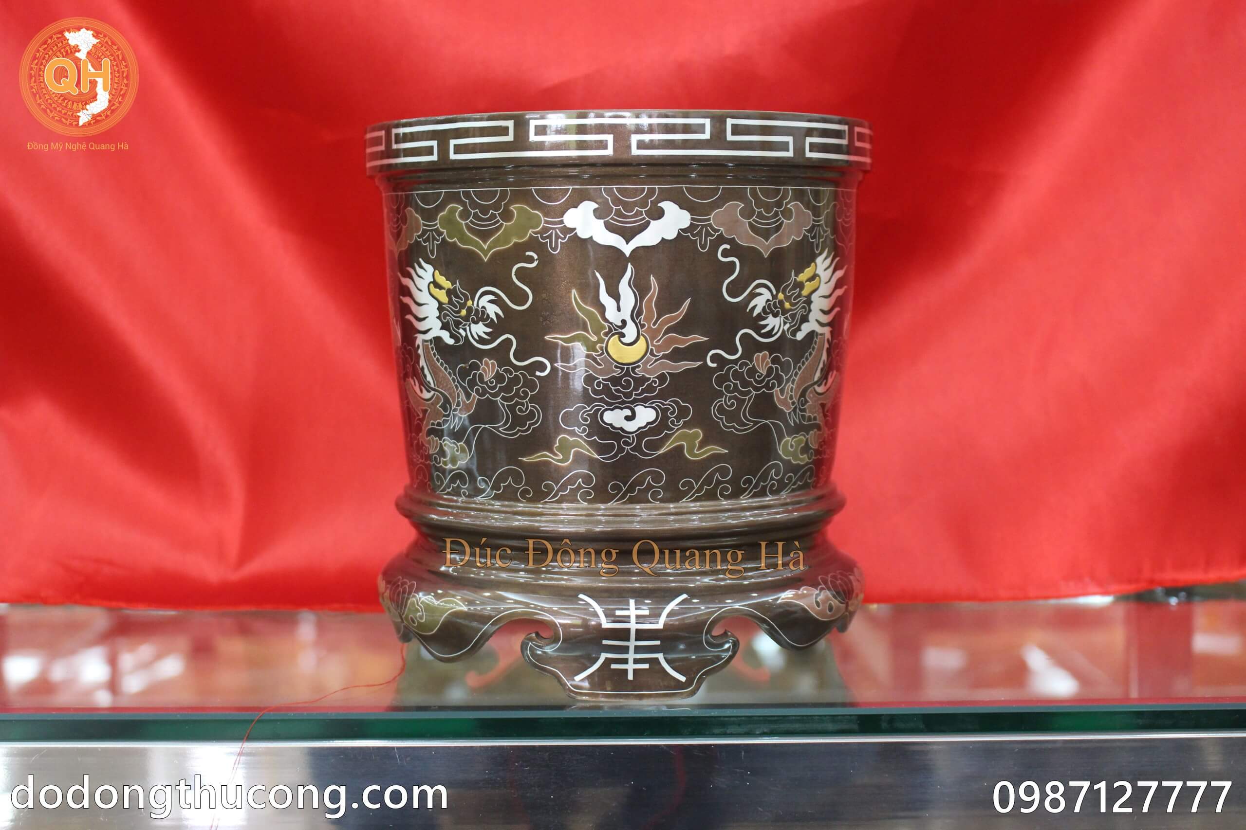 Chất liệu: Đồng đỏ nguyên chất, đúc thủ công, khảm ngũ sắc (vàng 9999, bạc, đồng đỏ, đồng vàng, đồng xanh )
