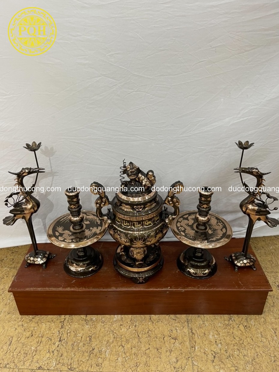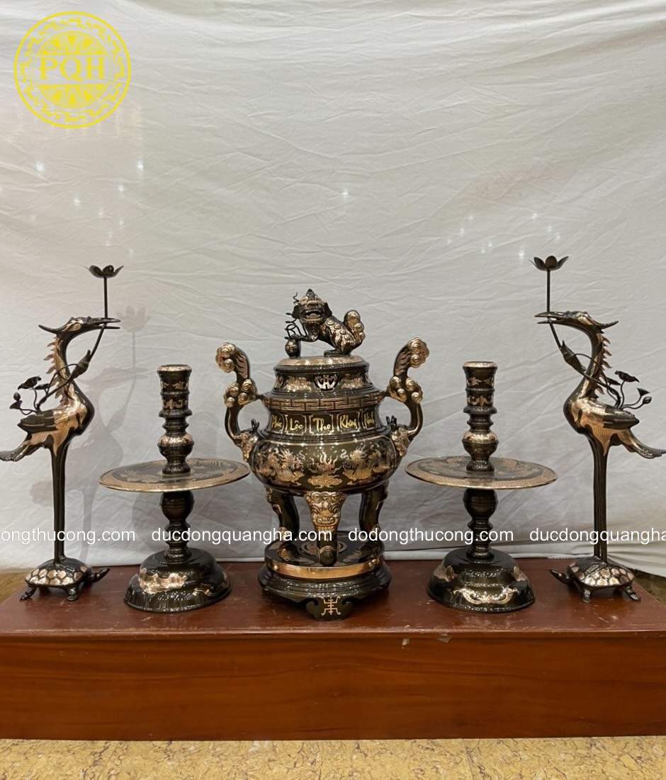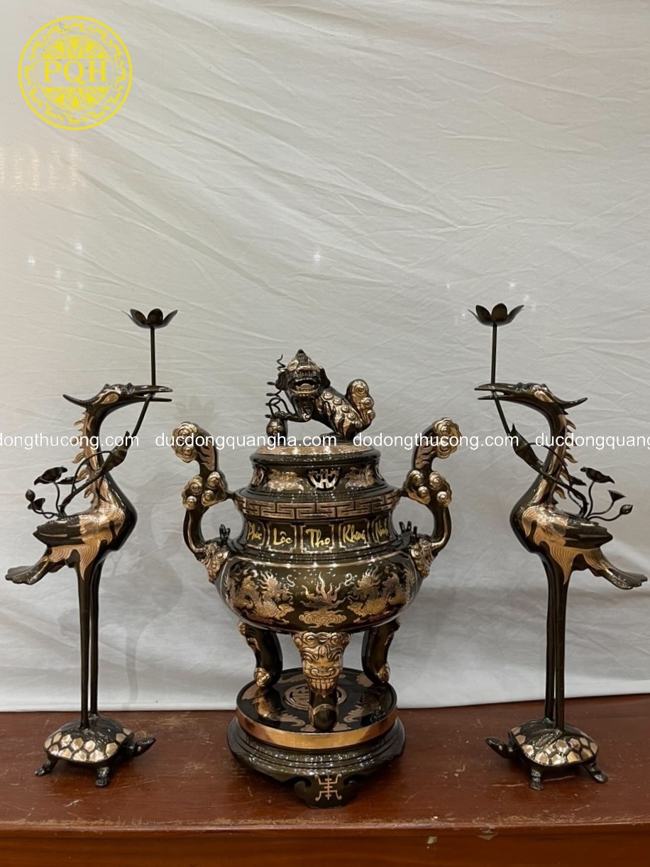 Tóm tắt về sản phẩm: Tất cả sản phẩm được đúc, gia công chế tác, chạm khảm tất cả đều được làm thủ công bằng tay mỗi sản phẩm thực sự là một tác phẩm đồng mỹ nghệ tinh xảo đến mức cao nhất, với những đường nét lưu loát, có giá trị thực sự cao của những nghệ nhân, những người thợ tài hoa từ làng nghề đúc đồng Huyện Ý Yên, Tỉnh Nam Định.