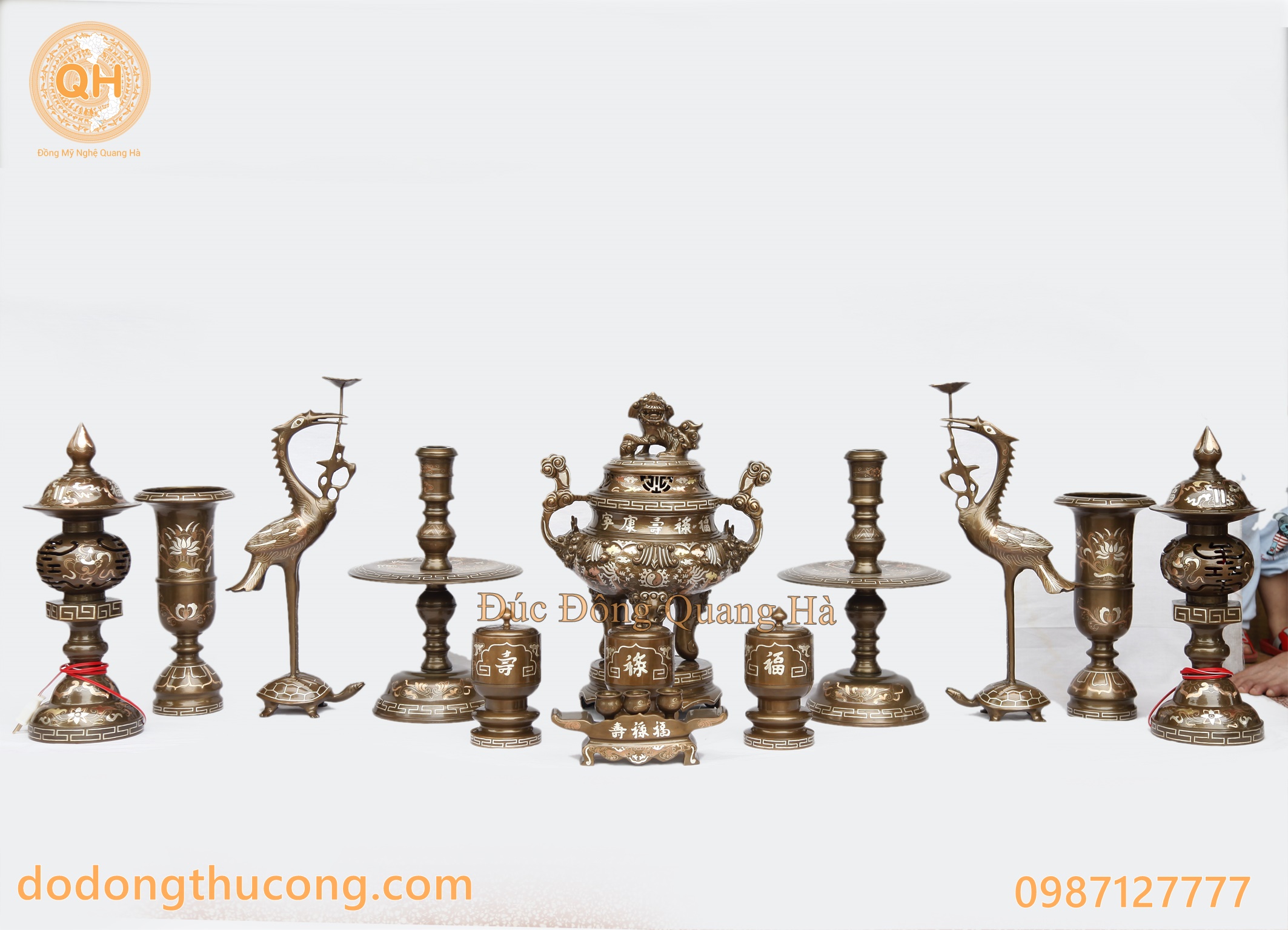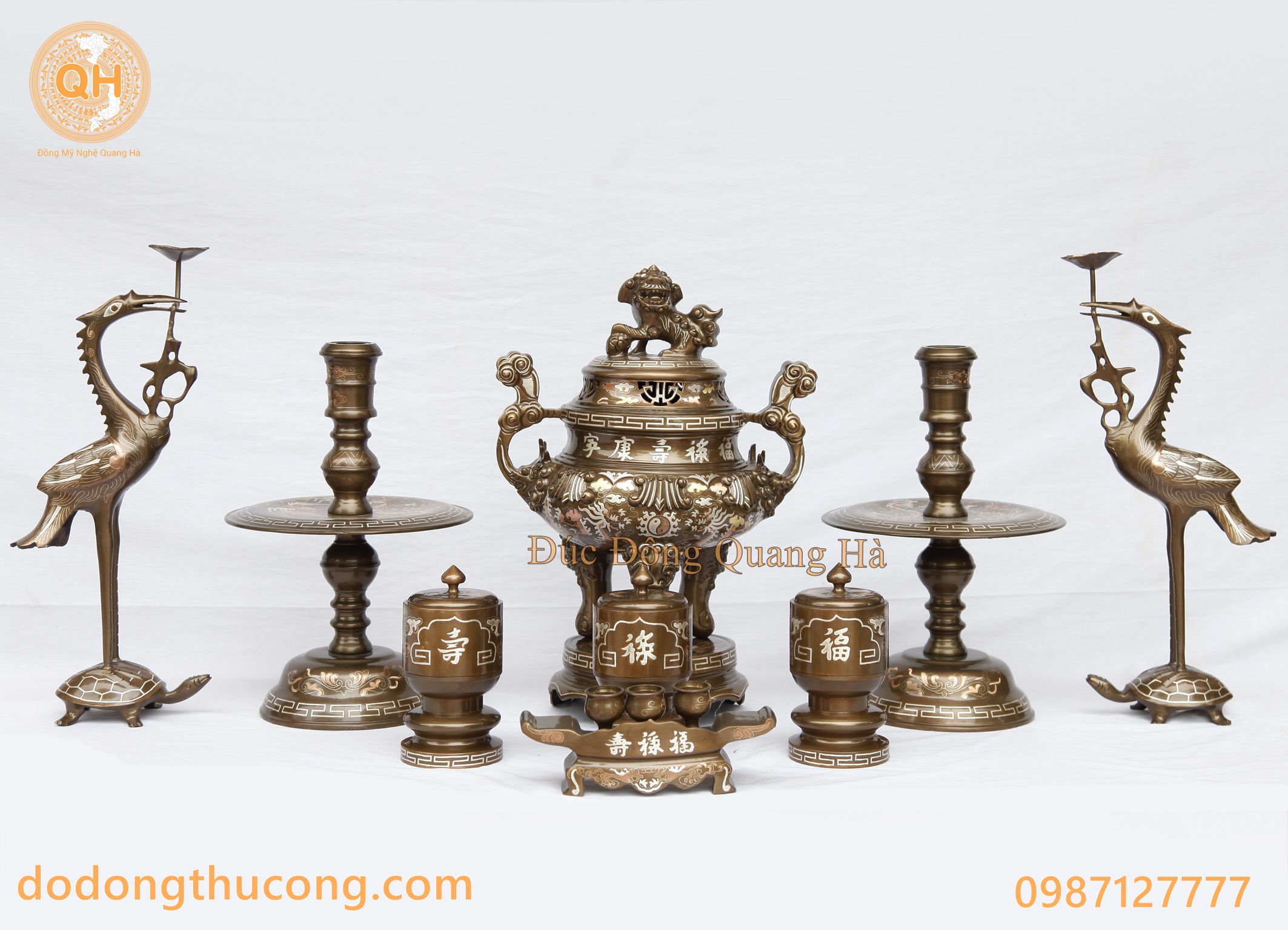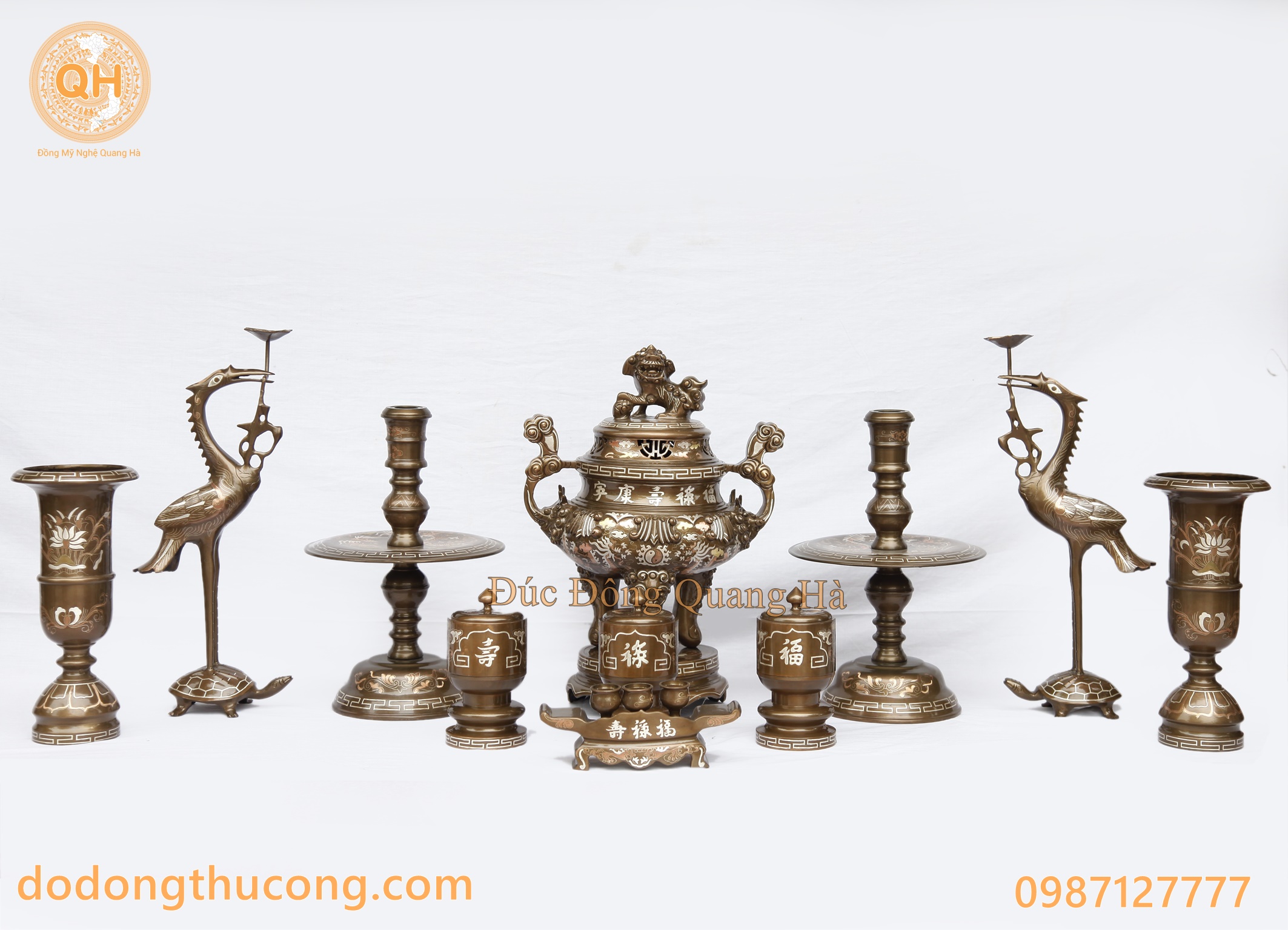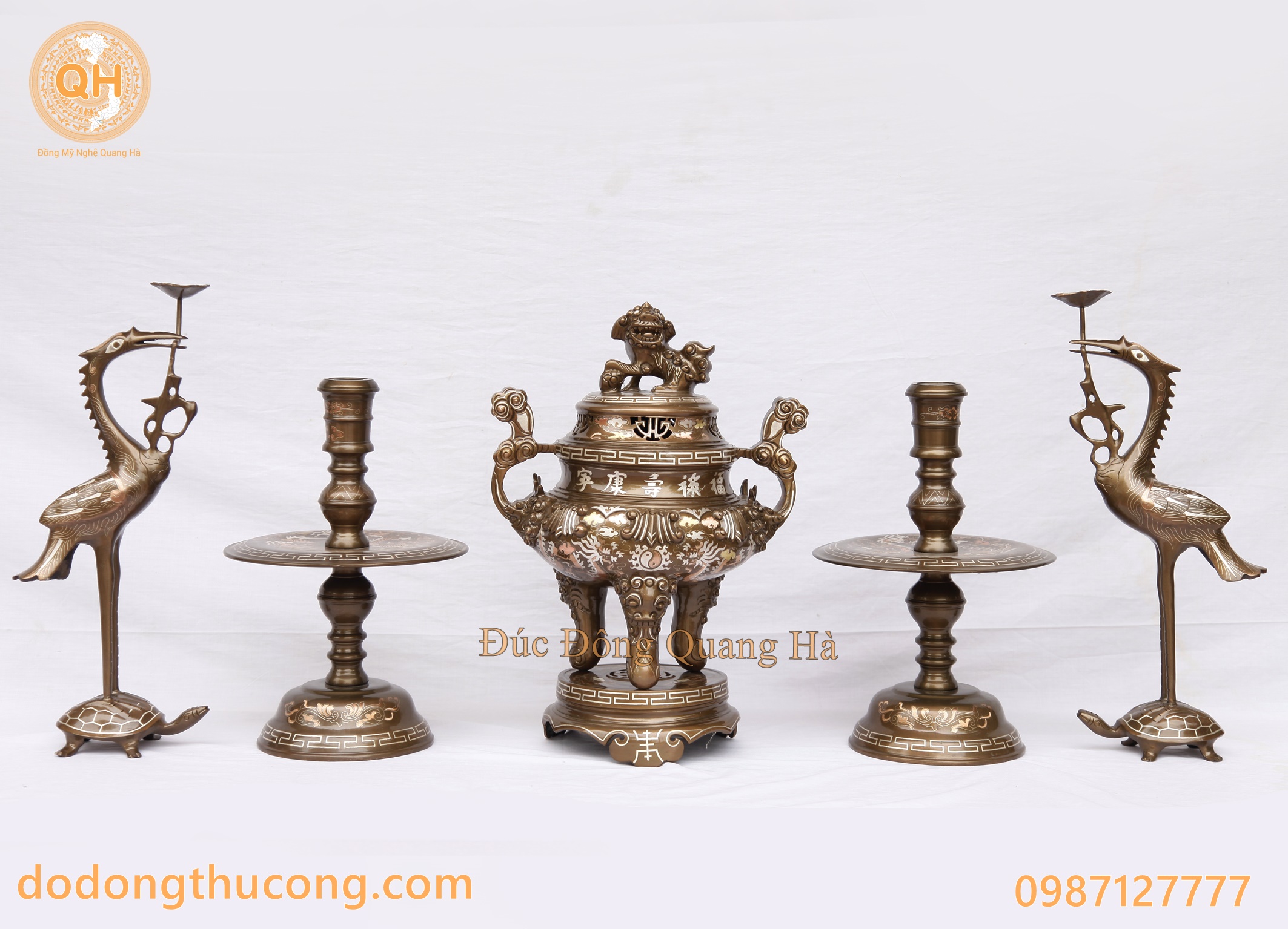 Chất liệu: Đồng đỏ, đúc thủ công, khảm tam khí ( bạc, đồng đỏ, đồng vàng )