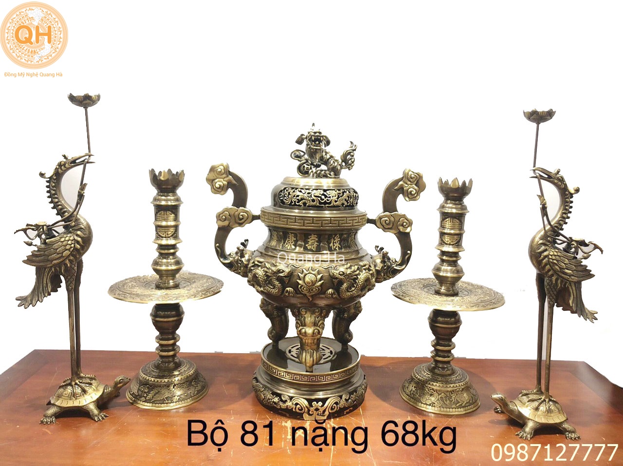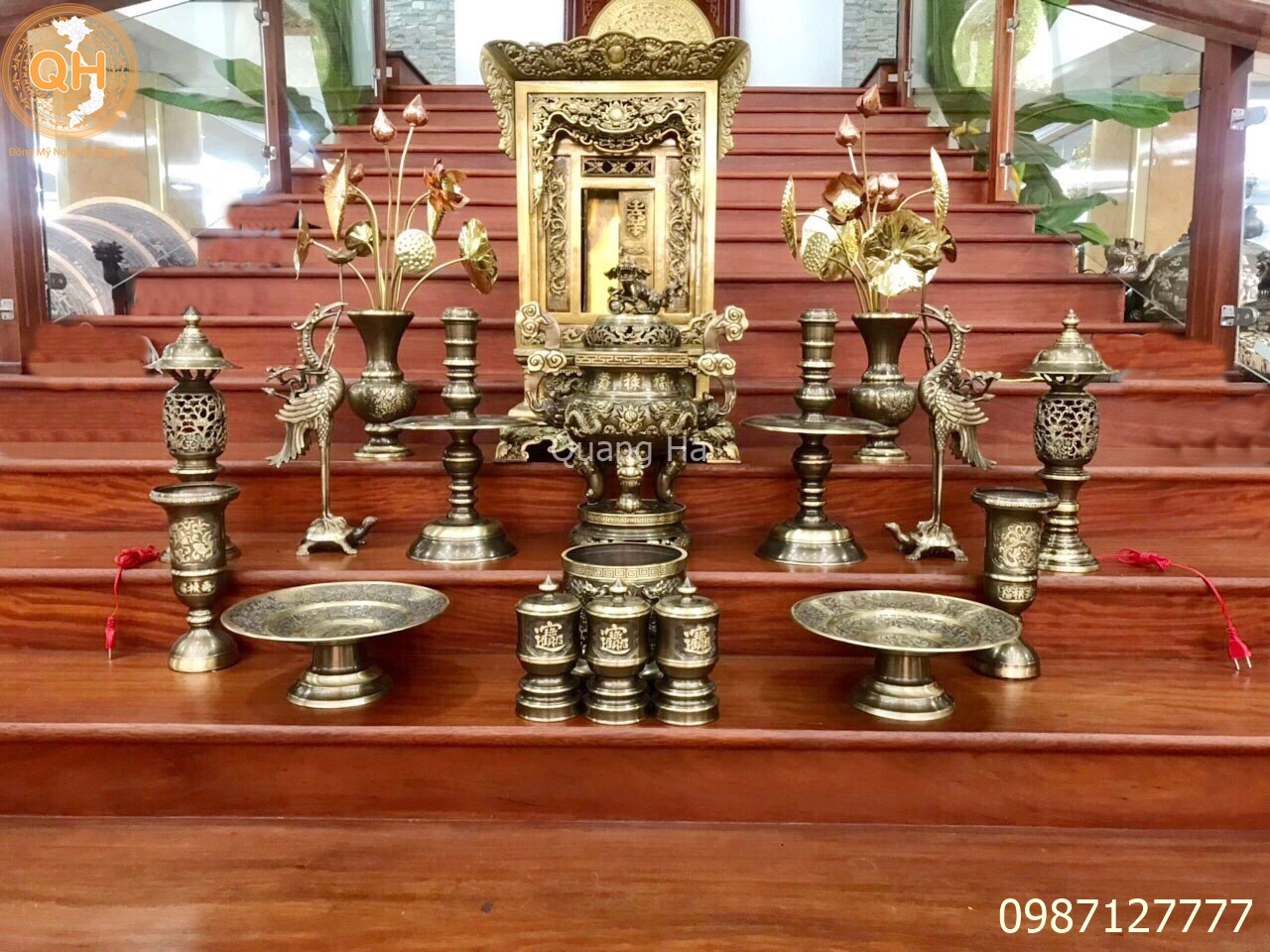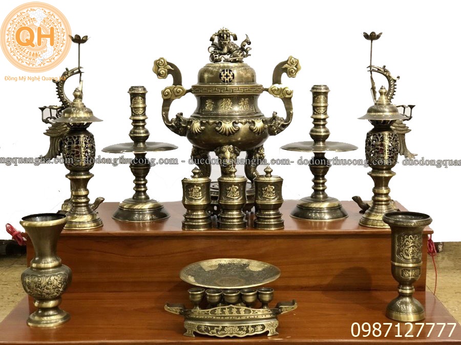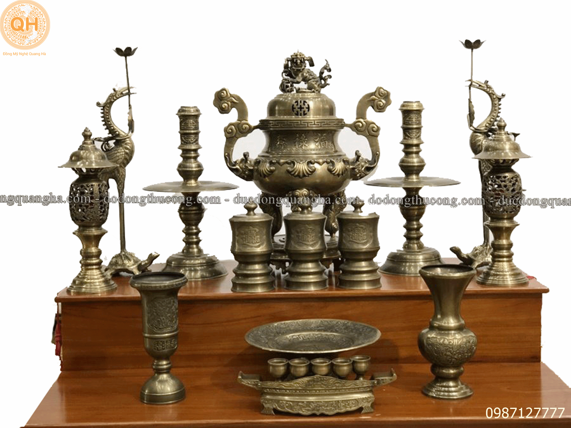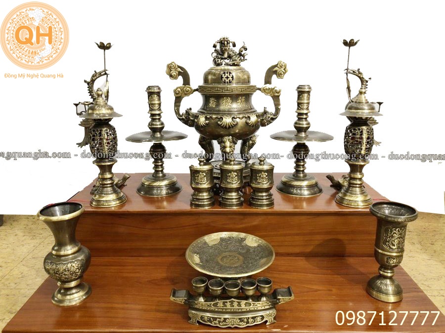 Tên gọi sản phẩm: Bộ đồ thờ bằng đồng vàng kiểu dáng dạ cổ