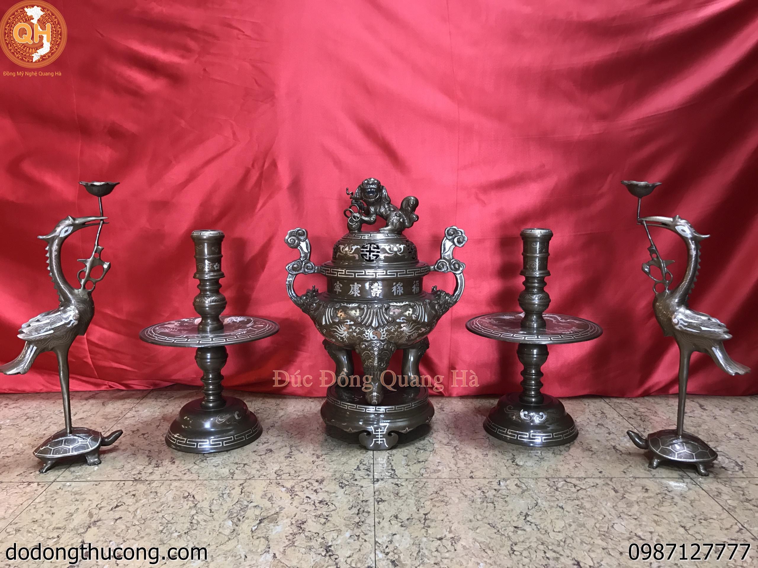Tên gọi sản phẩm: Bộ ngũ sự đồng đỏ khảm tam khí