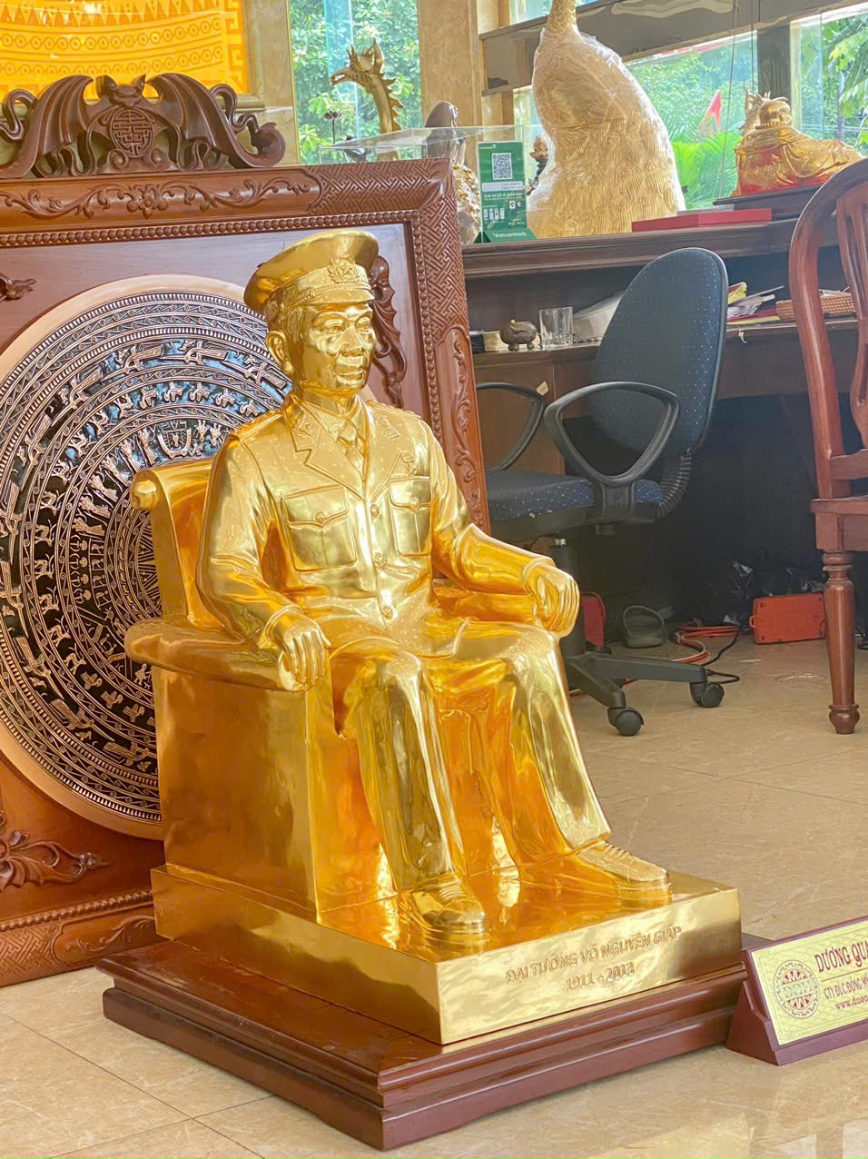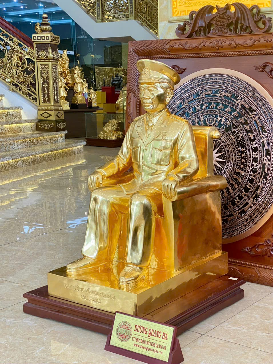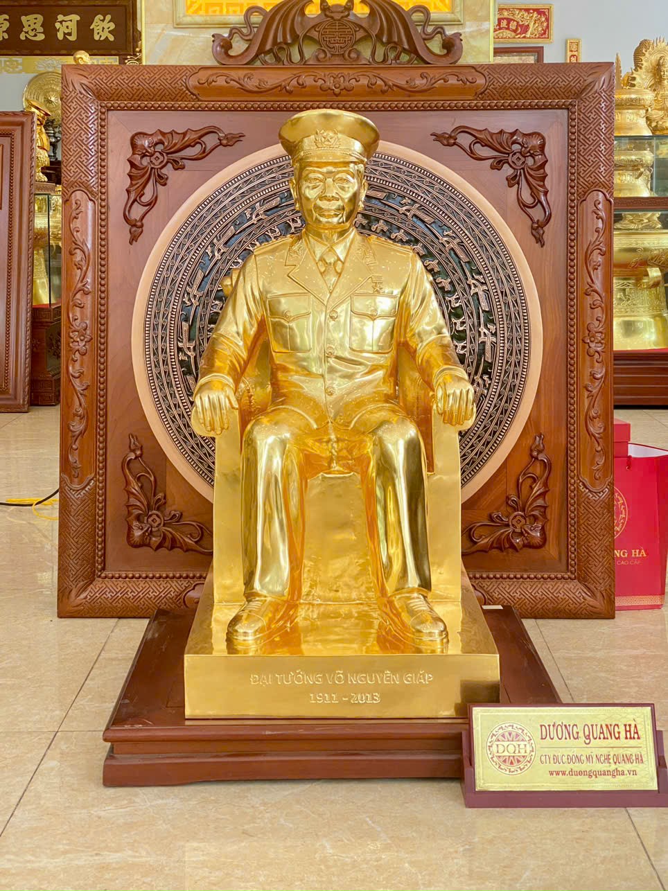 + Bức tượng được làm với hình ảnh Bác Giáp với gương mặt nghiêm nghị, ánh mắt nhìn xa xăm, trên người là bộ quân phục quen thuộc của Đại Tướng, từng đường nét đều được các nghệ nhân của Quang Hà làm tỉ mỉ, sắc nét thể hiện được sự trang nghiêm.