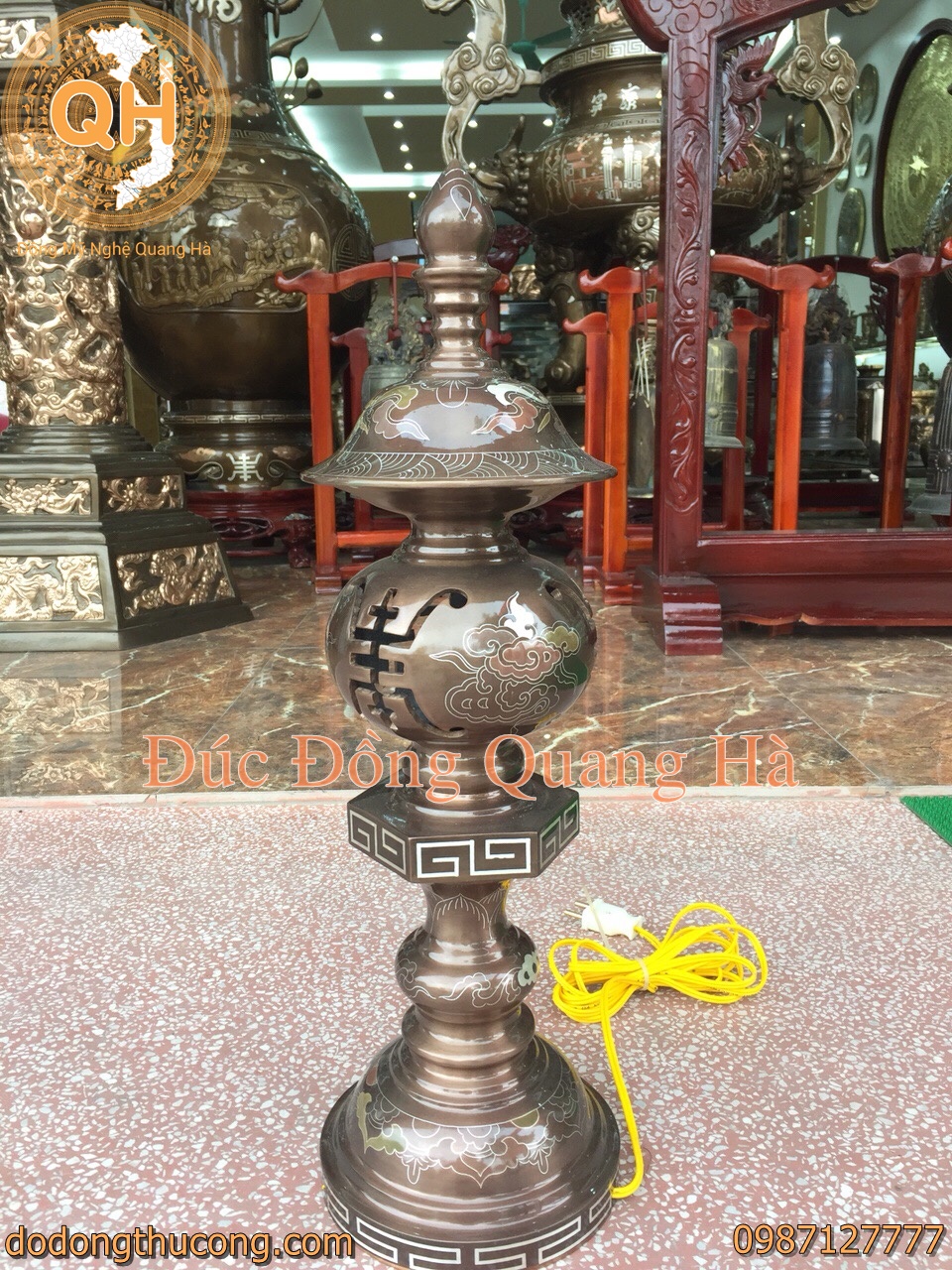 Tên gọi sản phẩm: Đèn đồng đỏ khảm ngũ sắc