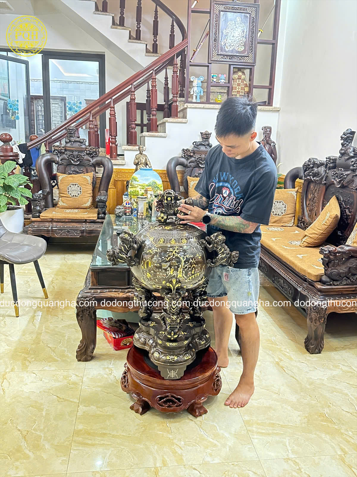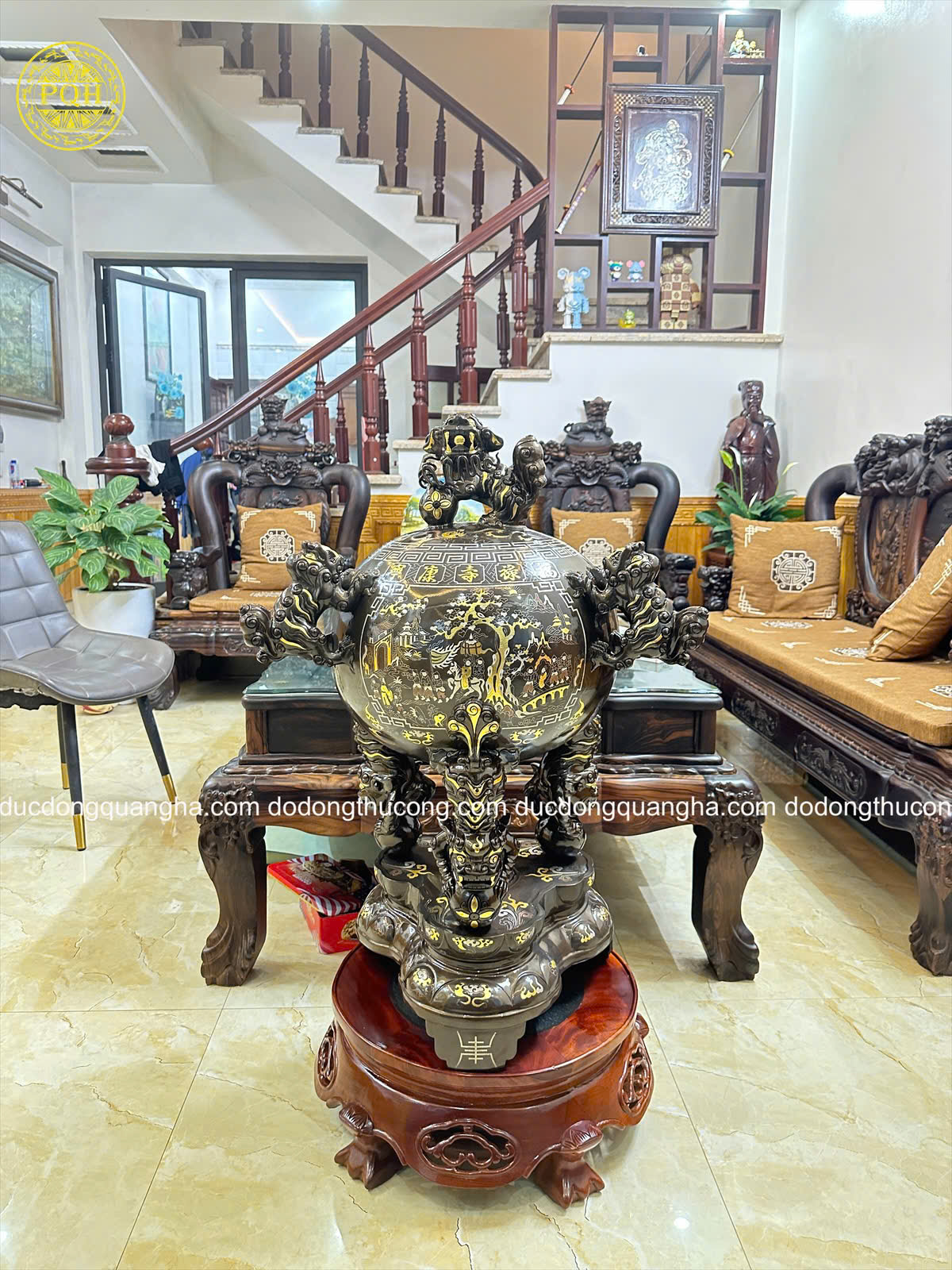 Tên gọi sản phẩm: Đỉnh thất lân vờn cầu khảm tam khí chữ vàng