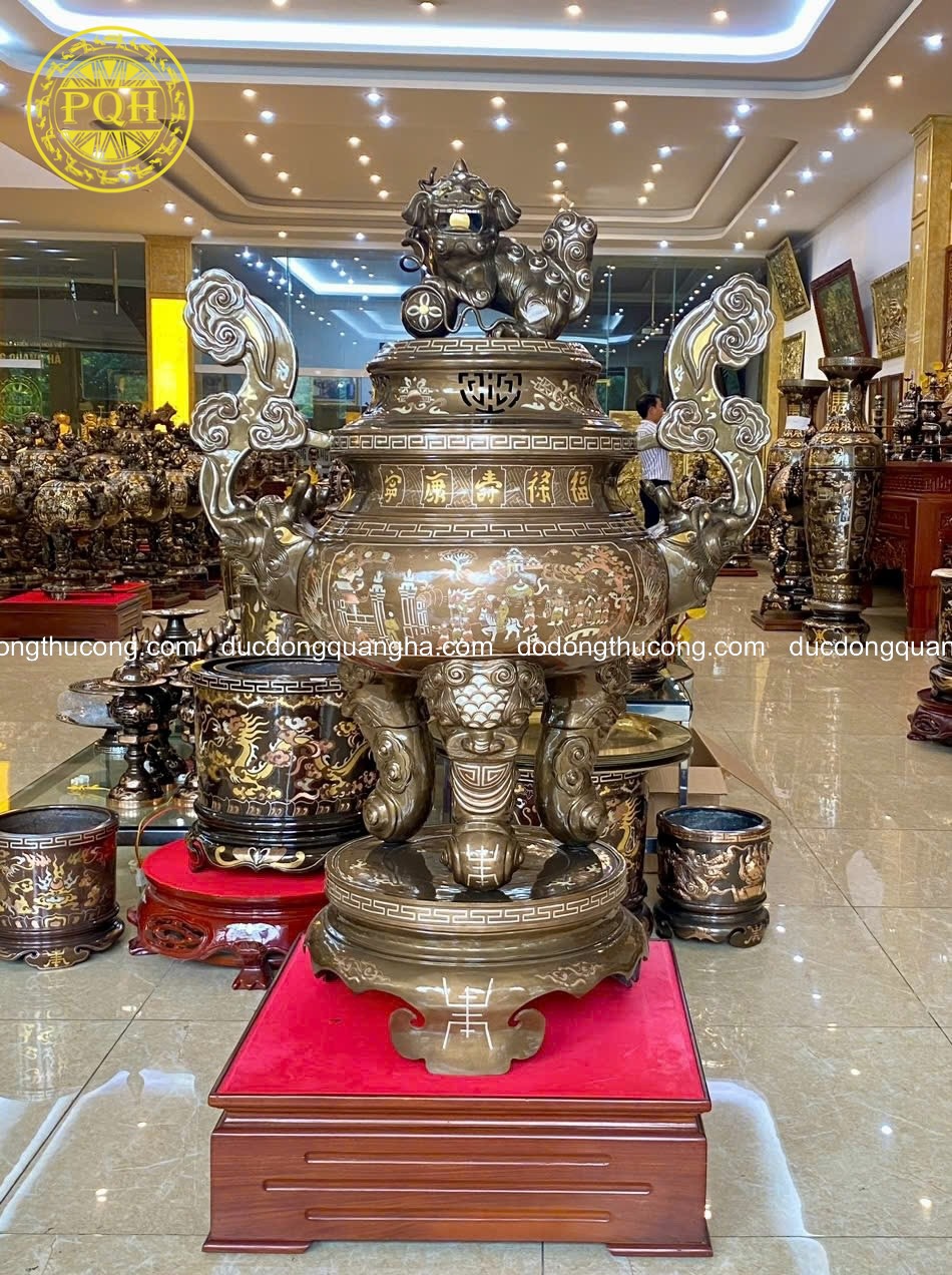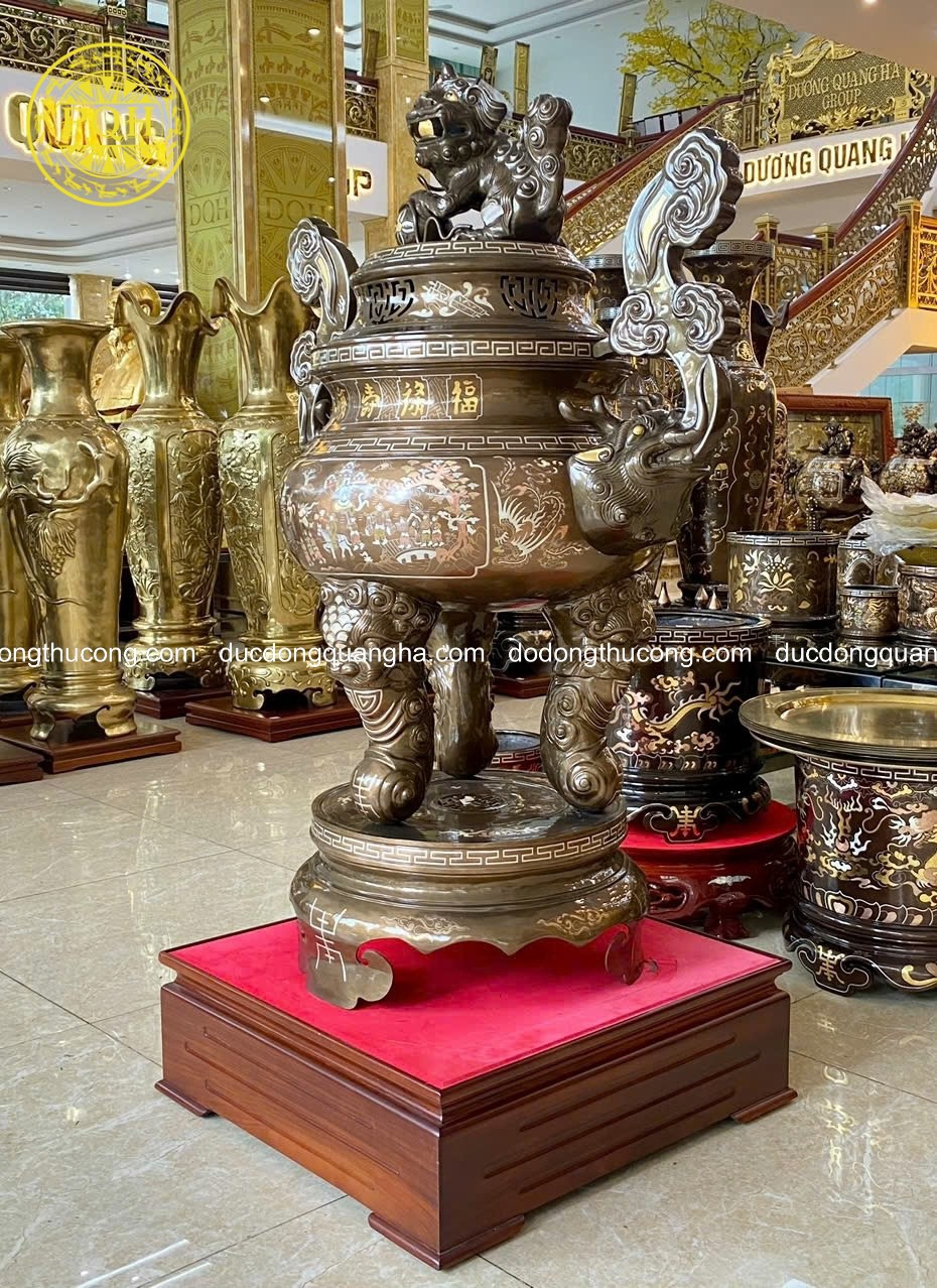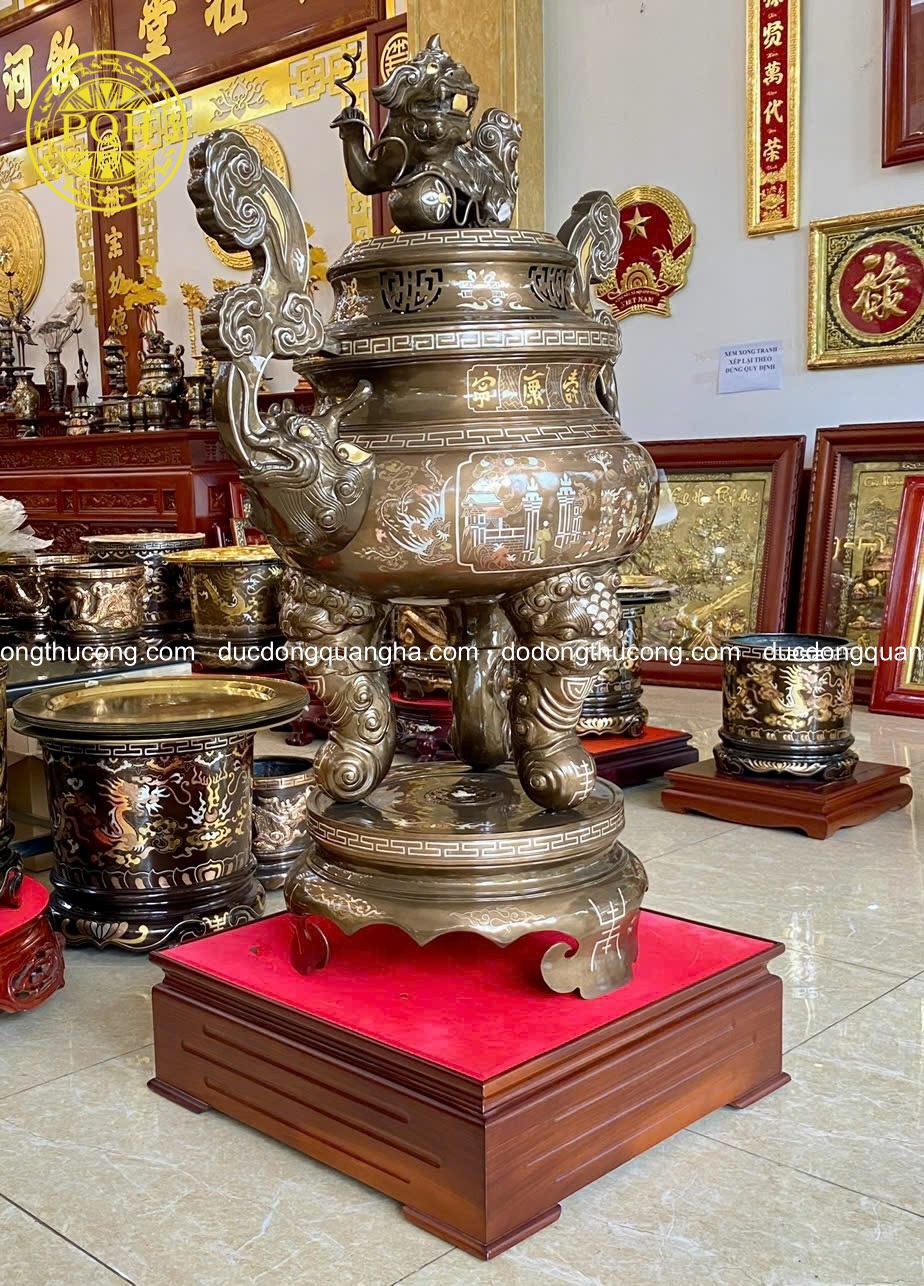 Tên gọi sản phẩm: Đỉnh Tai Mây Đồng Đỏ Khảm Tam Khí Dát Điểm Vàng