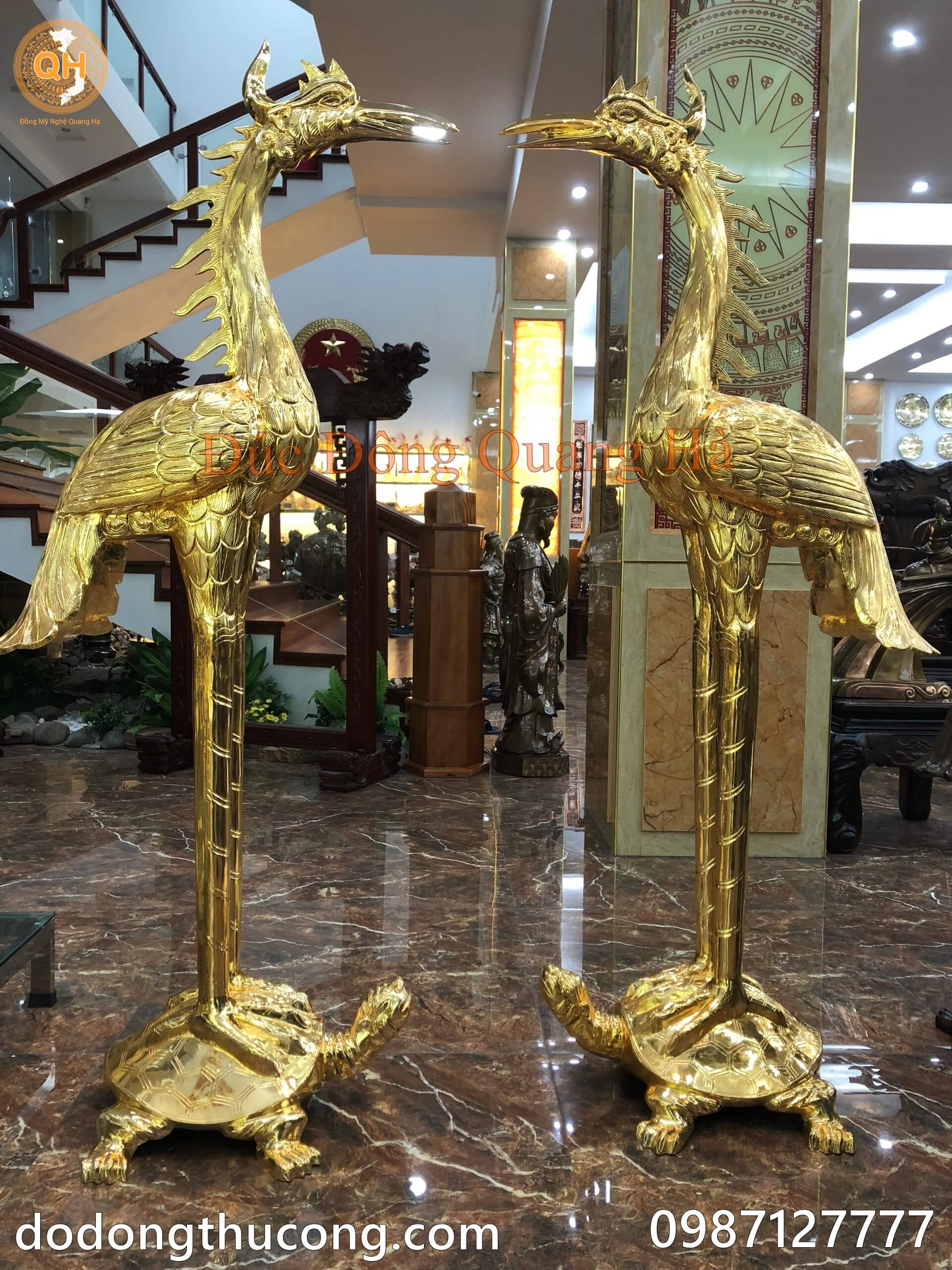 Tên sản phẩm : Đôi hạc đồng đỏ mạ vàng 24k
