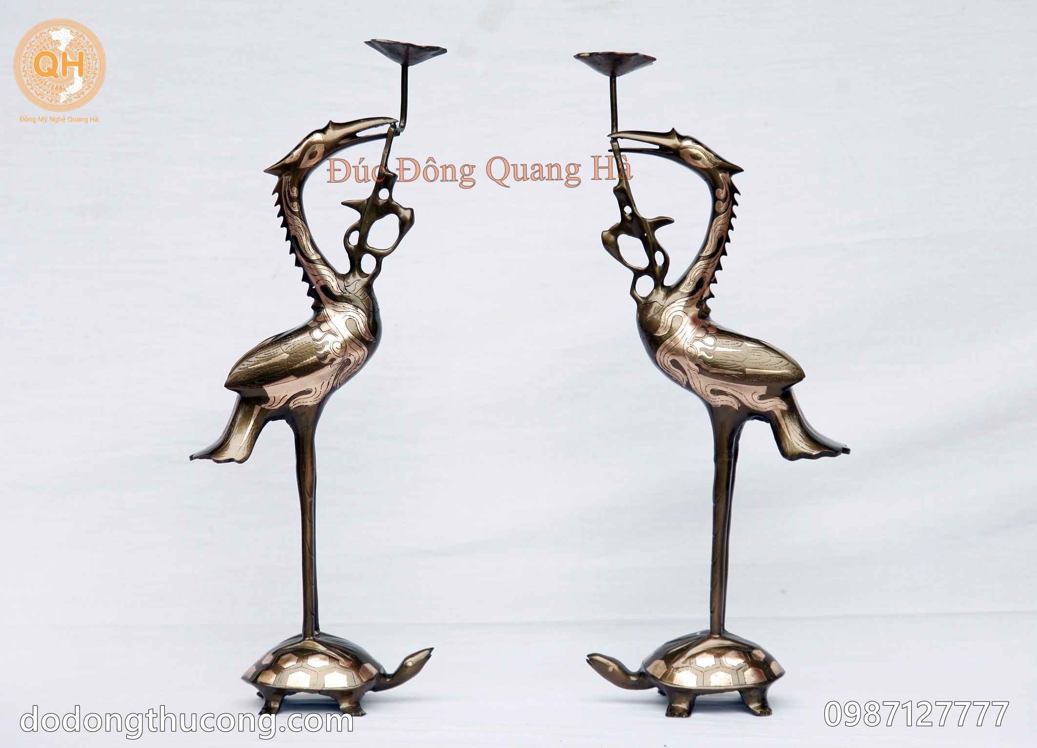 Tên sản phẩm : Đôi hạc đồng đỏ cạo màu
