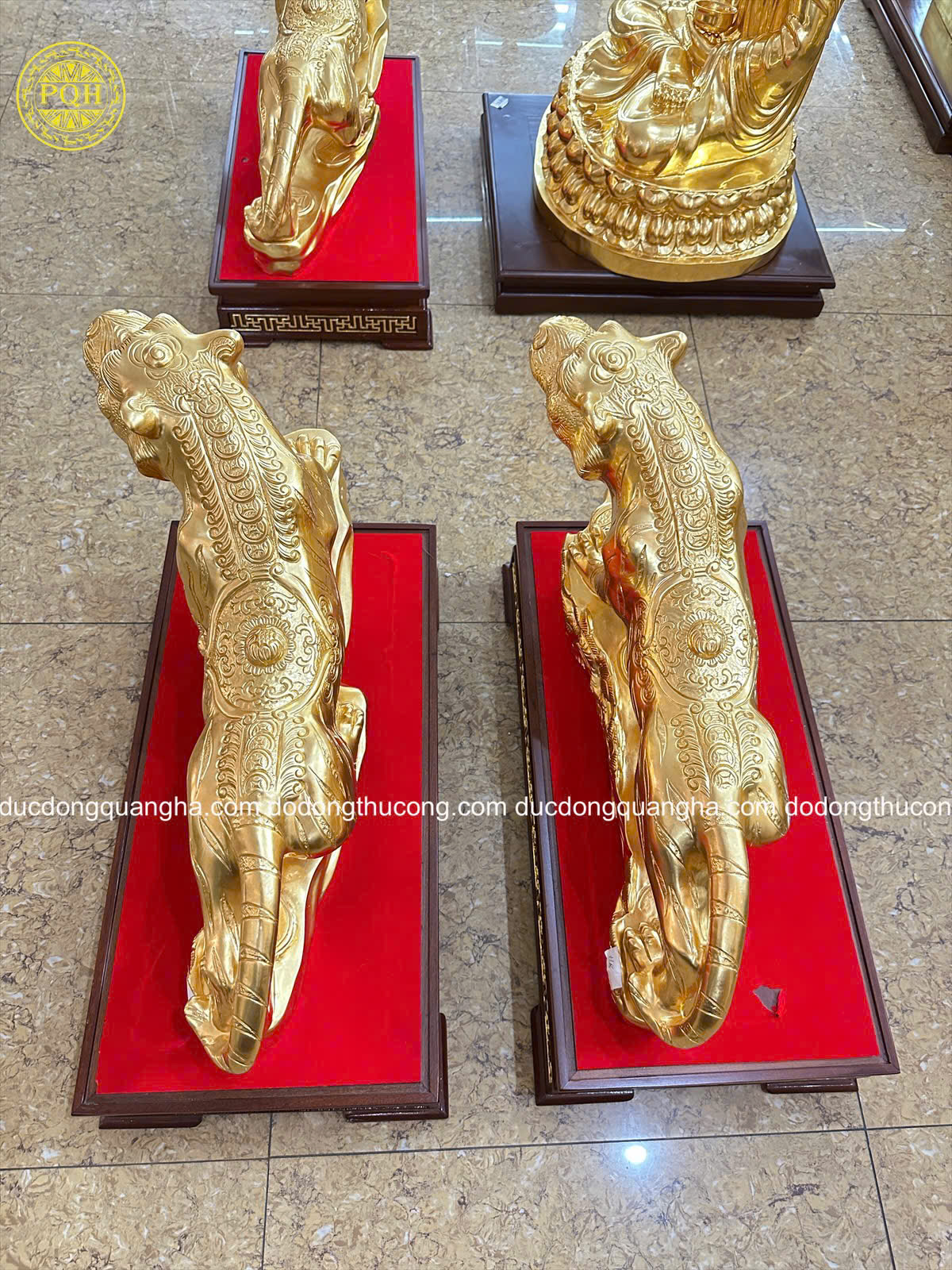 Chất liệu: Đồng đỏ nguyên chất đúc liền khối và thếp lá vàng 9999 bên ngoài