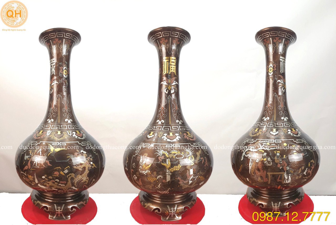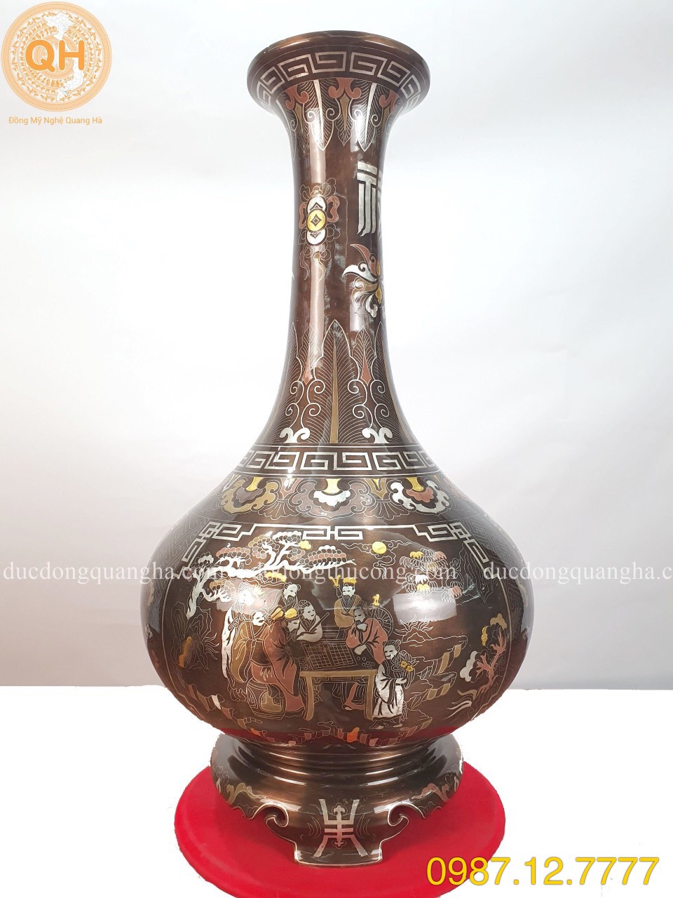 Chất liệu: Đồng đỏ nguyên chất, đúc thủ công, khảm ngũ sắc (vàng 9999, bạc, đồng đỏ, đồng vàng, đồng xanh )