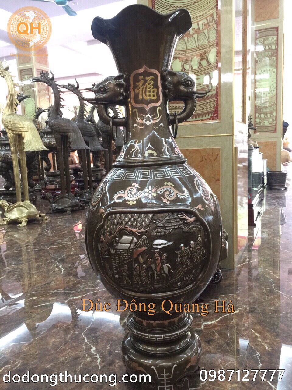 Tên gọi sản phẩm: Lọ tai voi đồng đỏ khảm tam khí