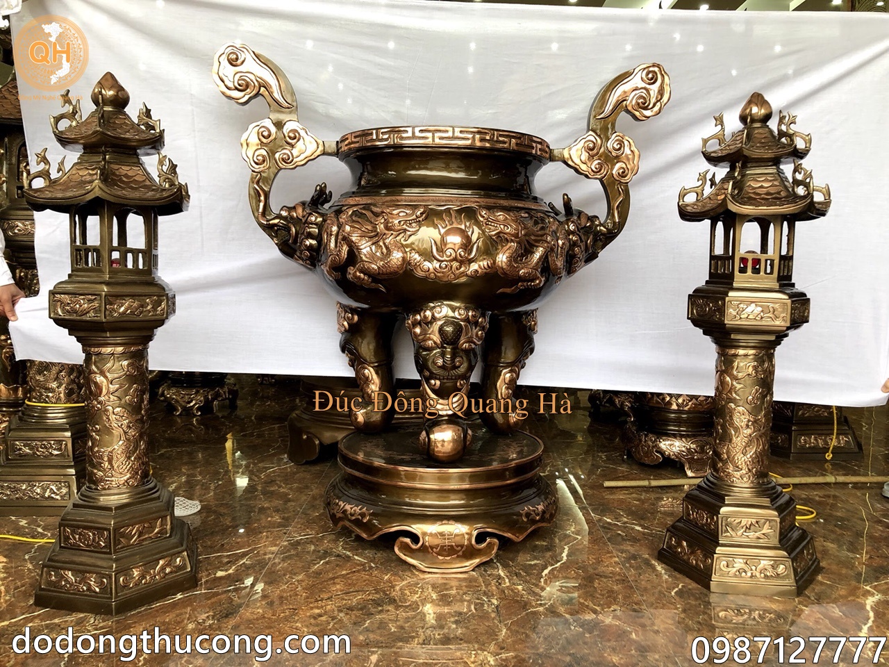 Trọng Lượng : Lư hương nặng 150kg, đôi đèn 120kg