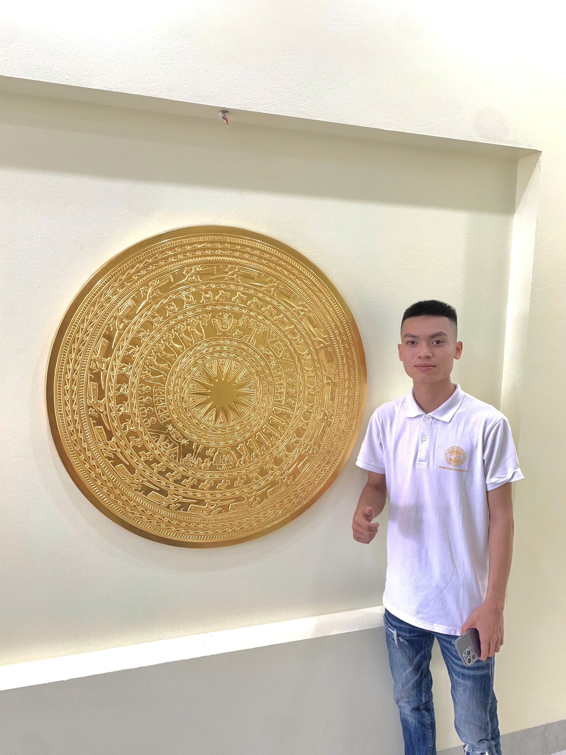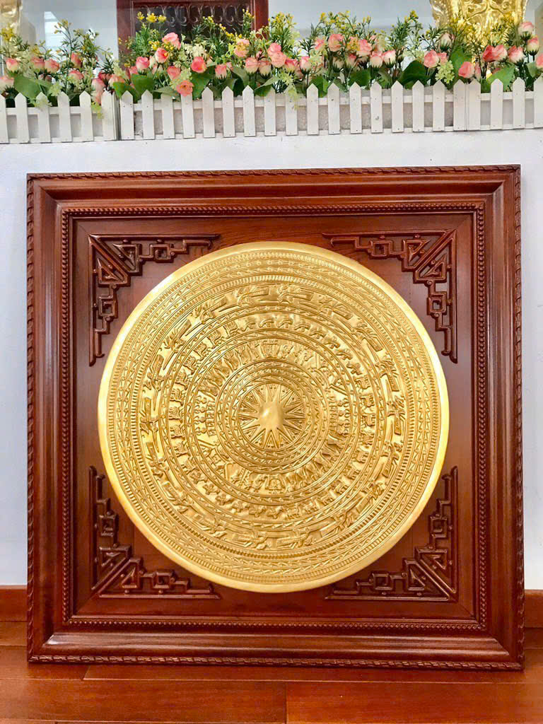 Tên gọi sản phẩm: MẶT TRỐNG ĐỒNG THÚC DÁT VÀNG 9999 ĐƯỜNG KÍNH 90CM, KHUNG GỖ GỤ 1M2