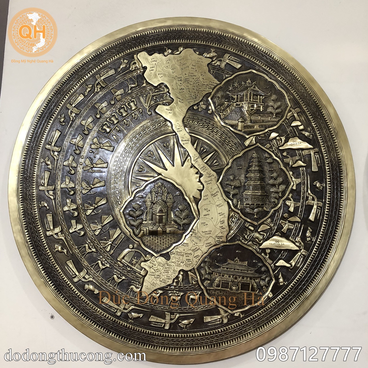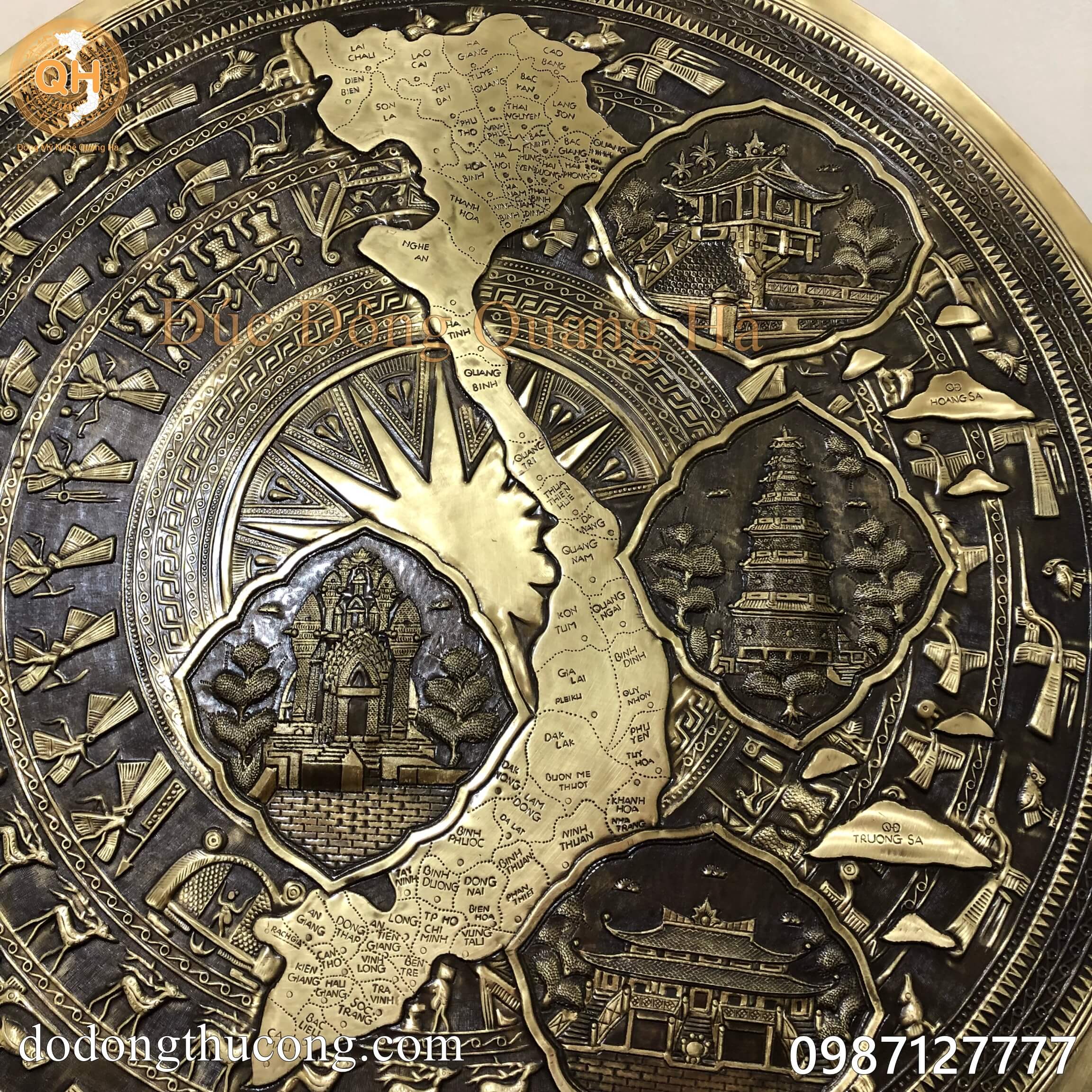 Tên gọi sản phẩm: Mặt trống đồng vàng hình bản đồ