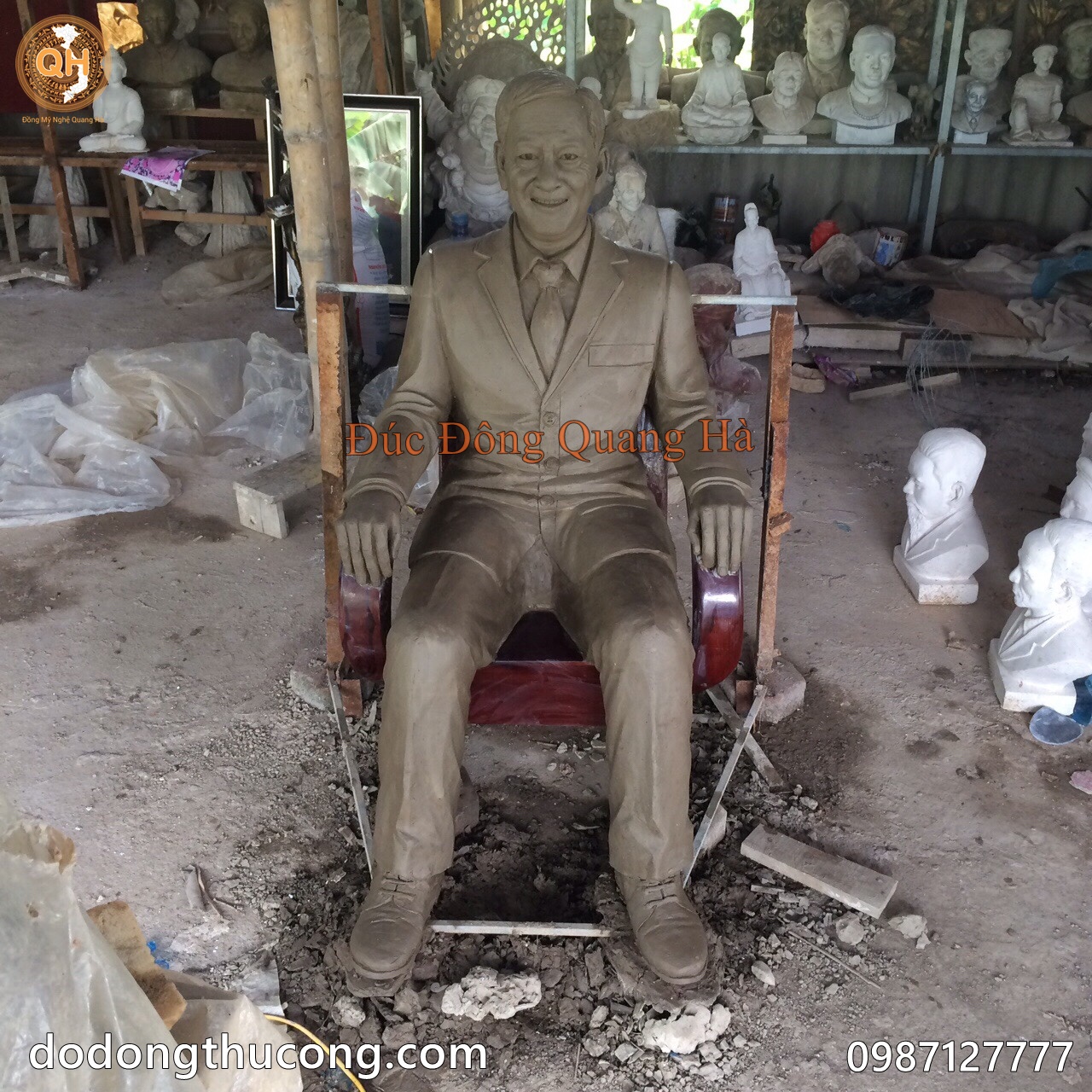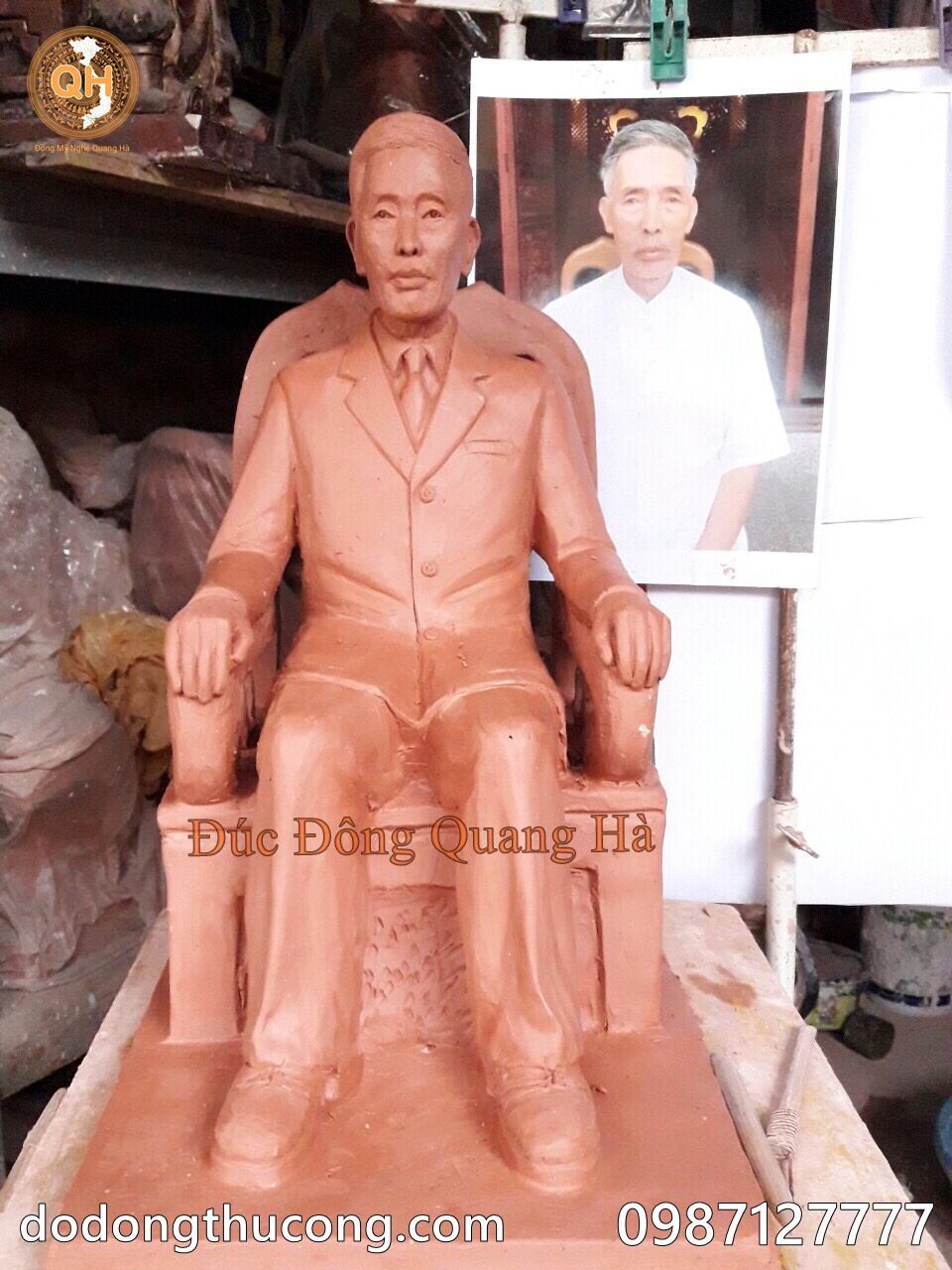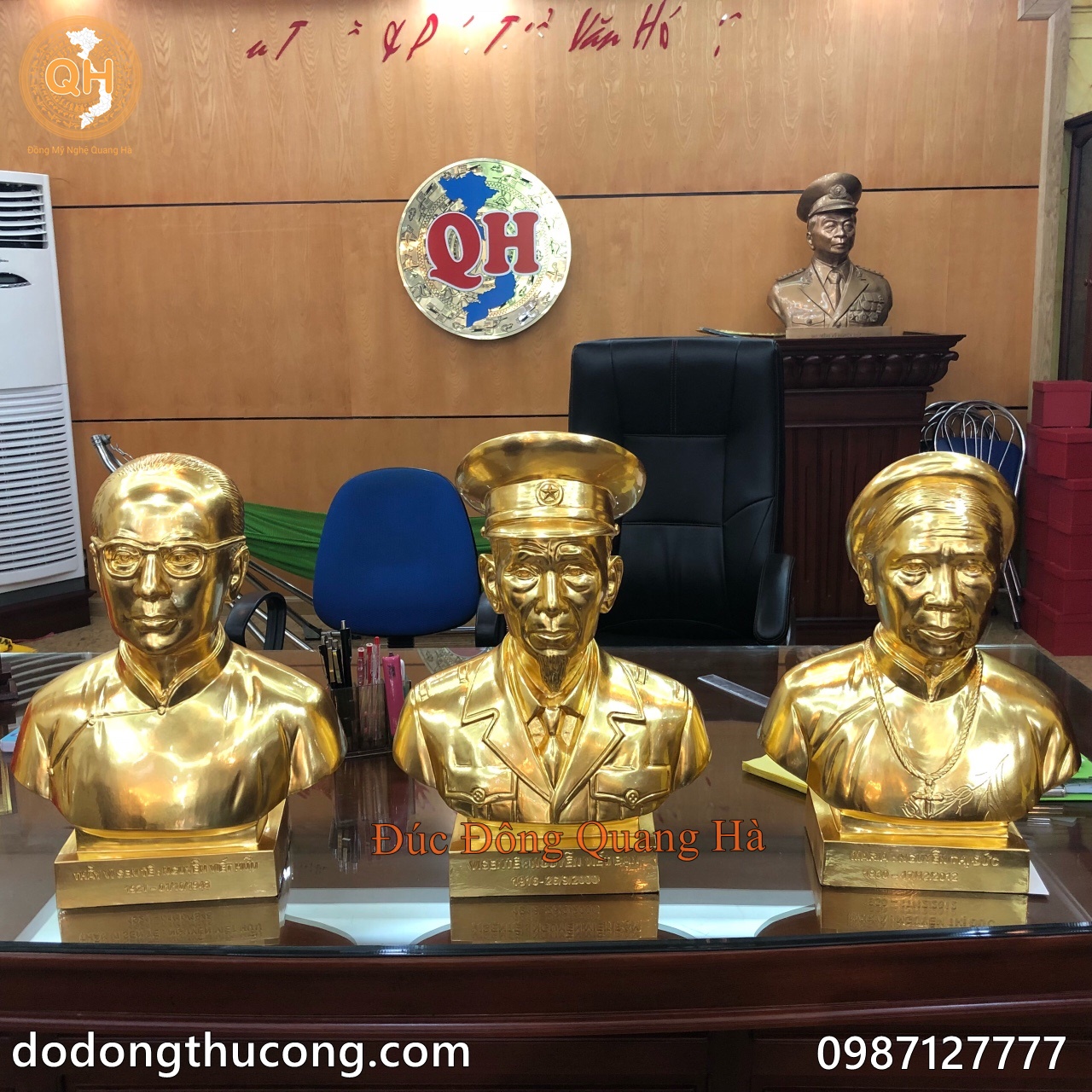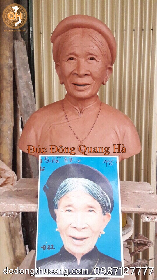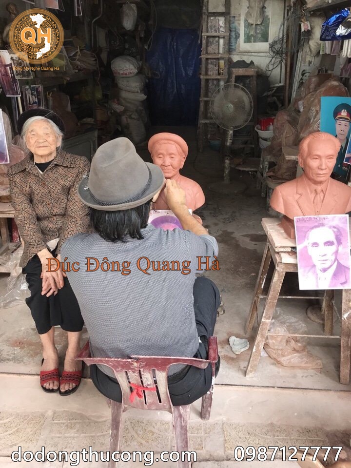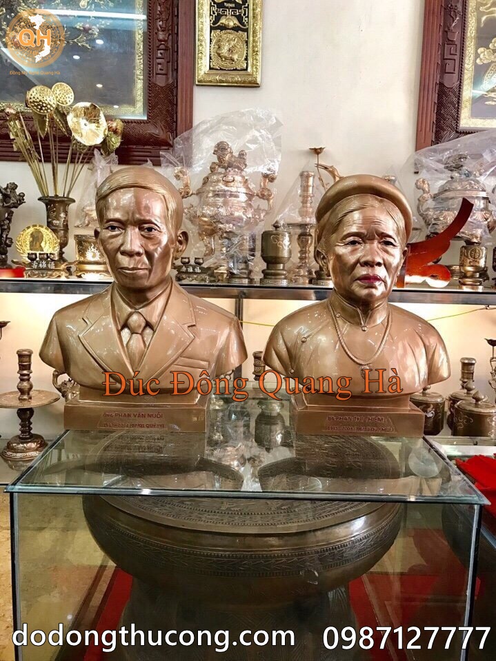 Đồ Đồng mỹ nghệ Quang Hà Đúc Tượng Đồng chân dung, bán thân, tượng truyền thần ông bà, cha mẹ, tượng danh nhân, tượng anh hùng liệt sỹ, người đã khuất. Tượng chân dung được đúc hoàn toàn thủ công theo phương pháp truyền thống, đúc nguyên bản bằng đồng đỏ, hoặc đồng vàng tùy vào yêu cầu khách hàng.