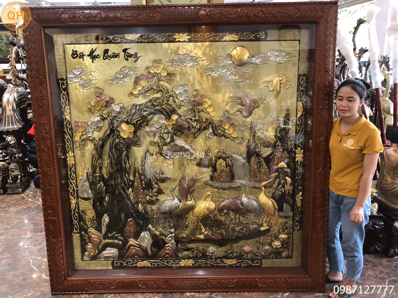 Chúng tôi nhận làm tranh theo kích thước yêu cầu của quý khách hàng. Nhận mạ vàng, dát vàng 9999 lên bề mặt sản phẩm theo yêu cầu.