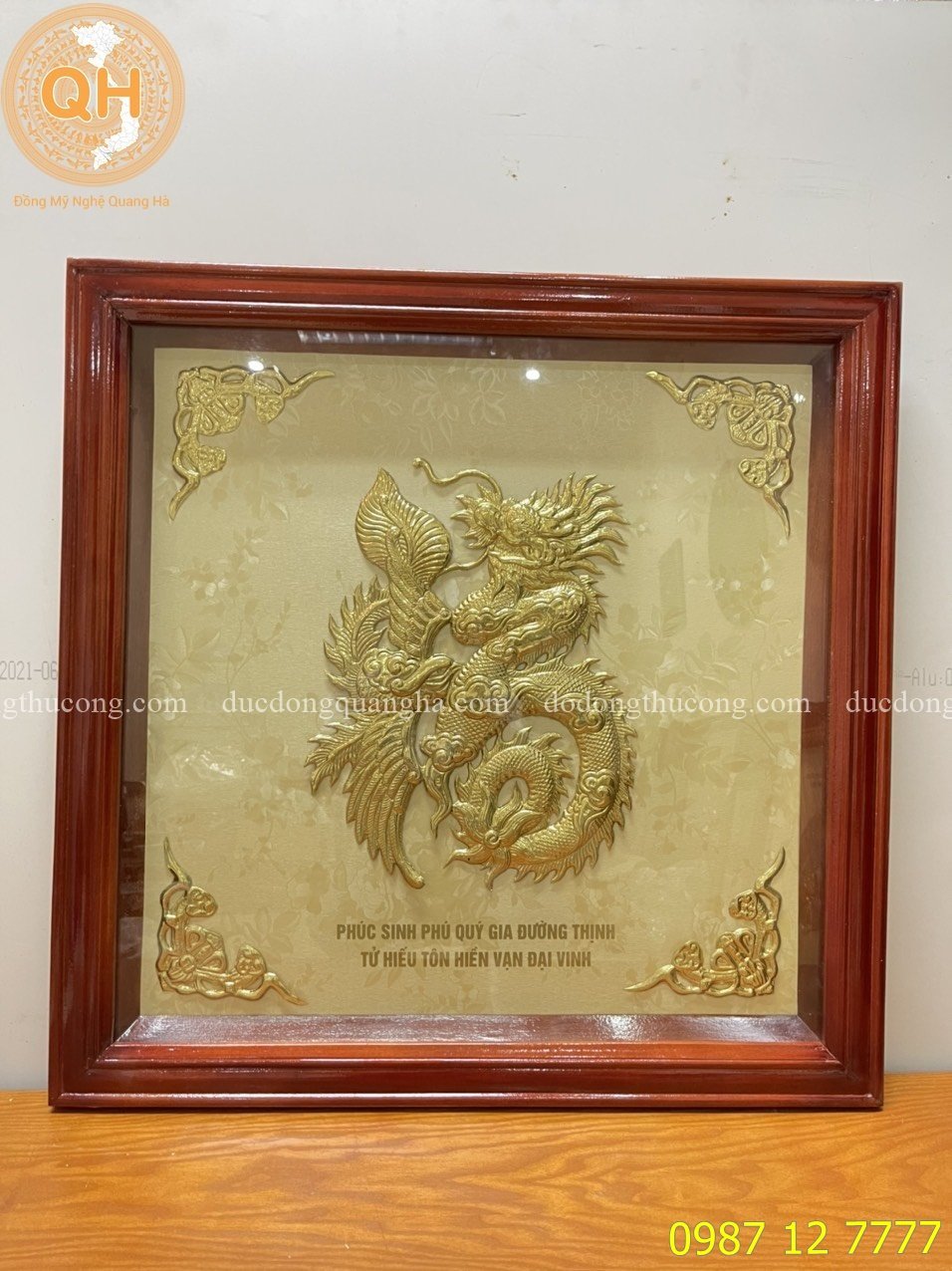 Chất liệu : Khổ tranh liền tấm đồng vàng gò thủ công, dát vàng 9999 lắp khung đồng hoặc khung gỗ