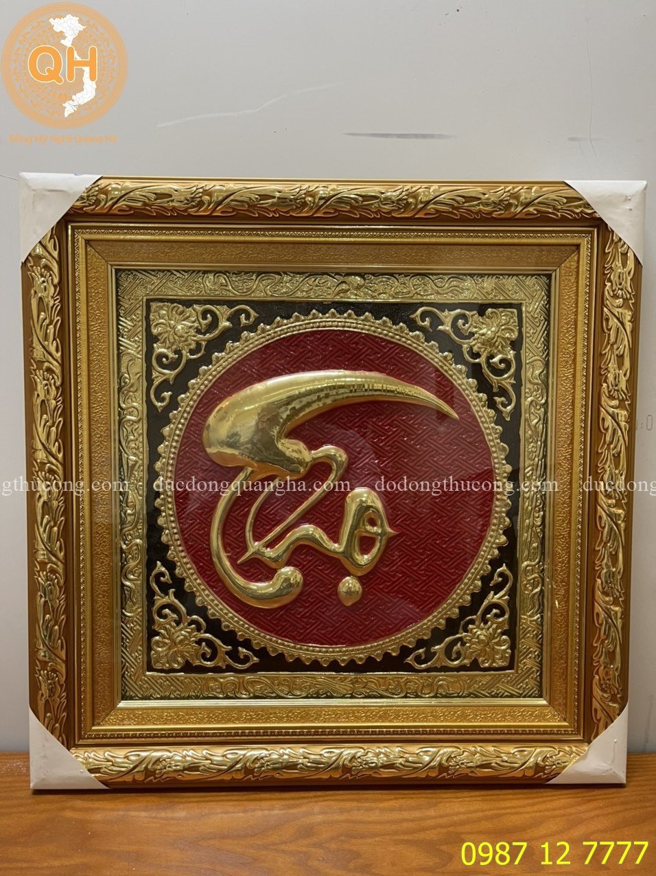 Chất liệu : Khổ tranh liền tấm đồng vàng gò thủ công, dát vàng 9999 lắp khung đồng hoặc khung gỗ