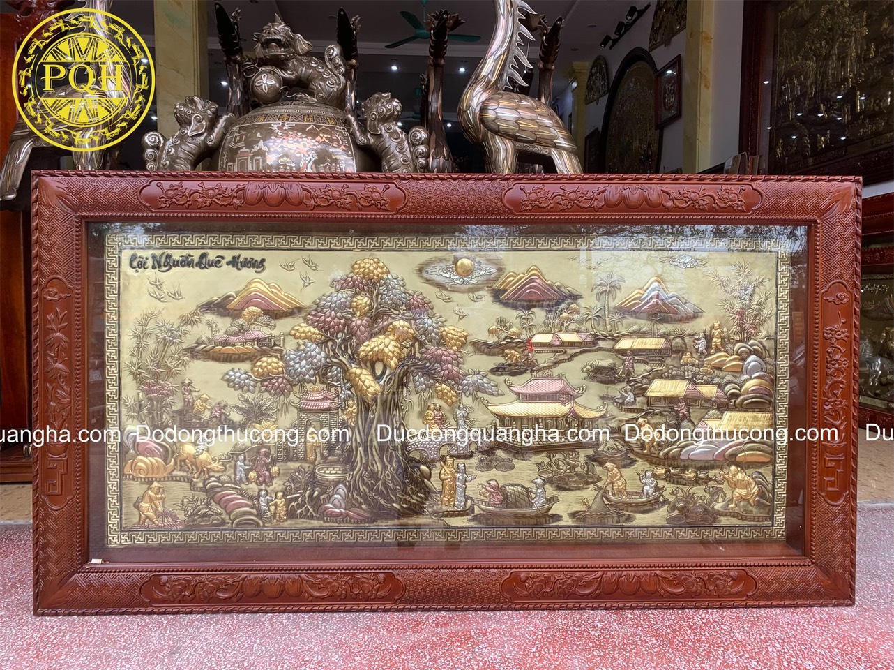 Loại khung thứ 2 cao cấp hơn là khung bằng đồng, các cạnh của khung chạm trổ họa tiết đẹp, có thể nói dòng khung đồng này đảm bảo bức tranh đồng mãi bền theo thời gian.