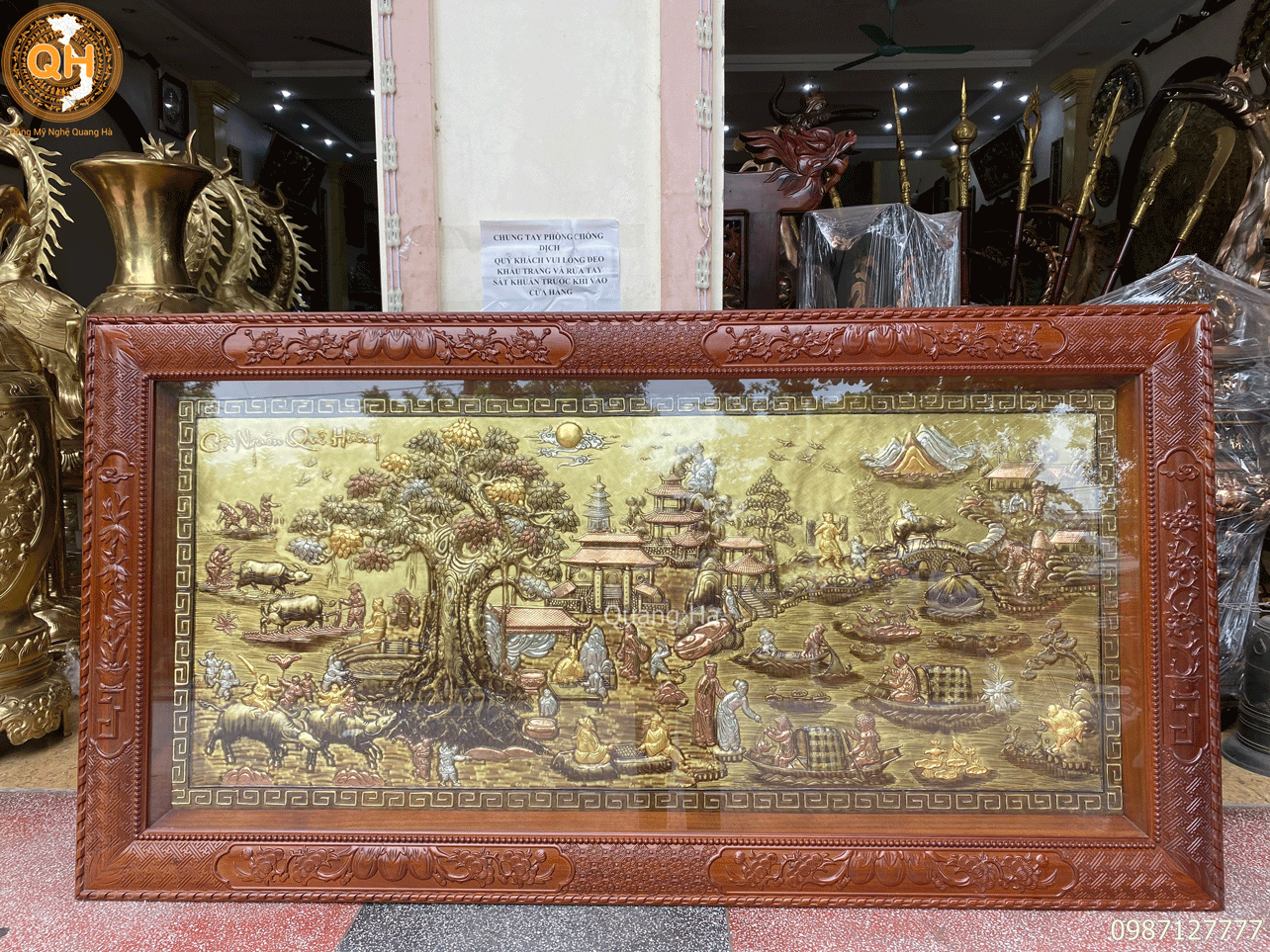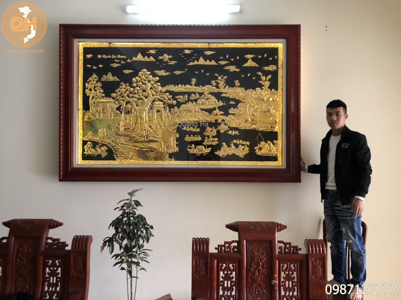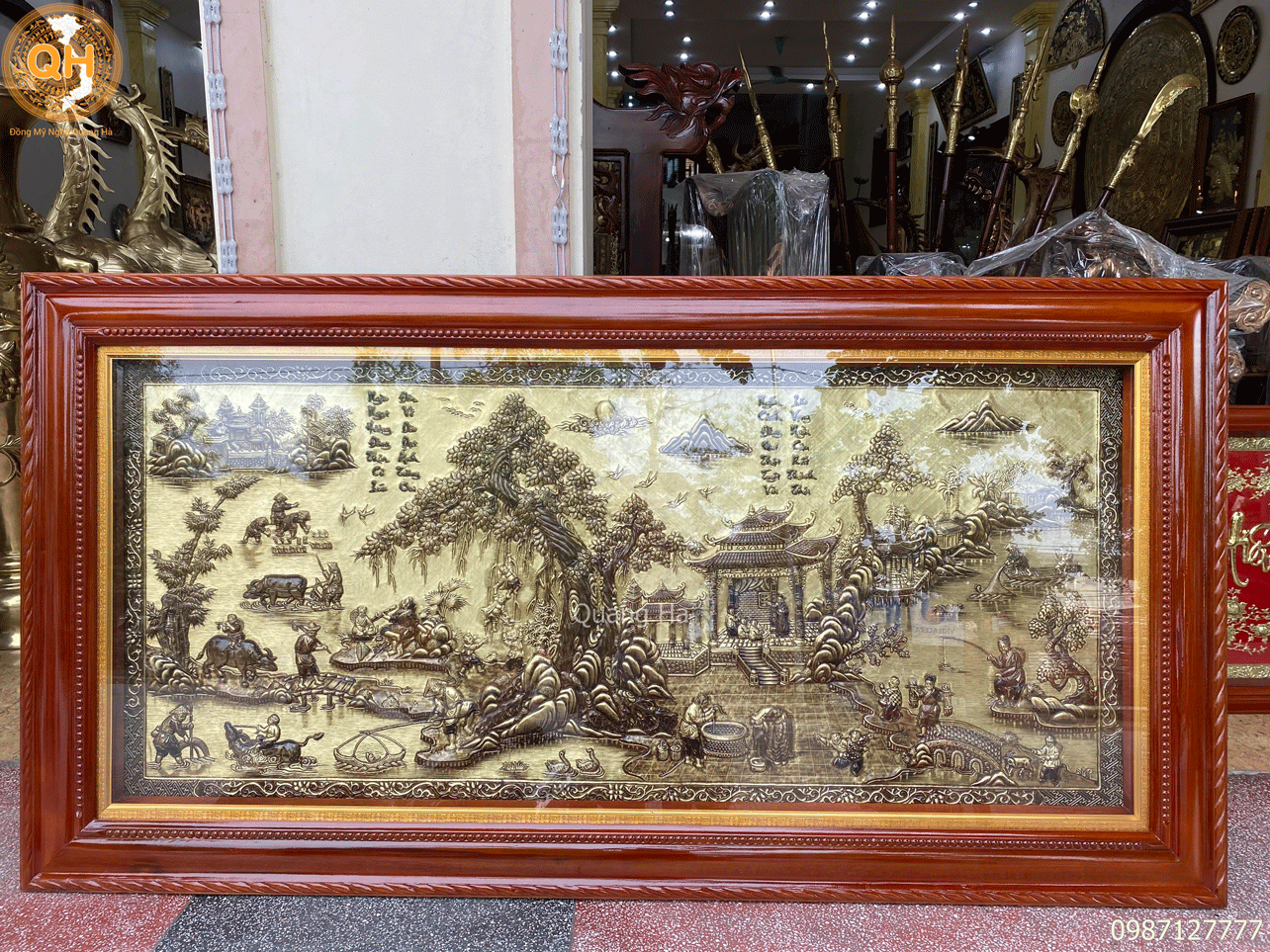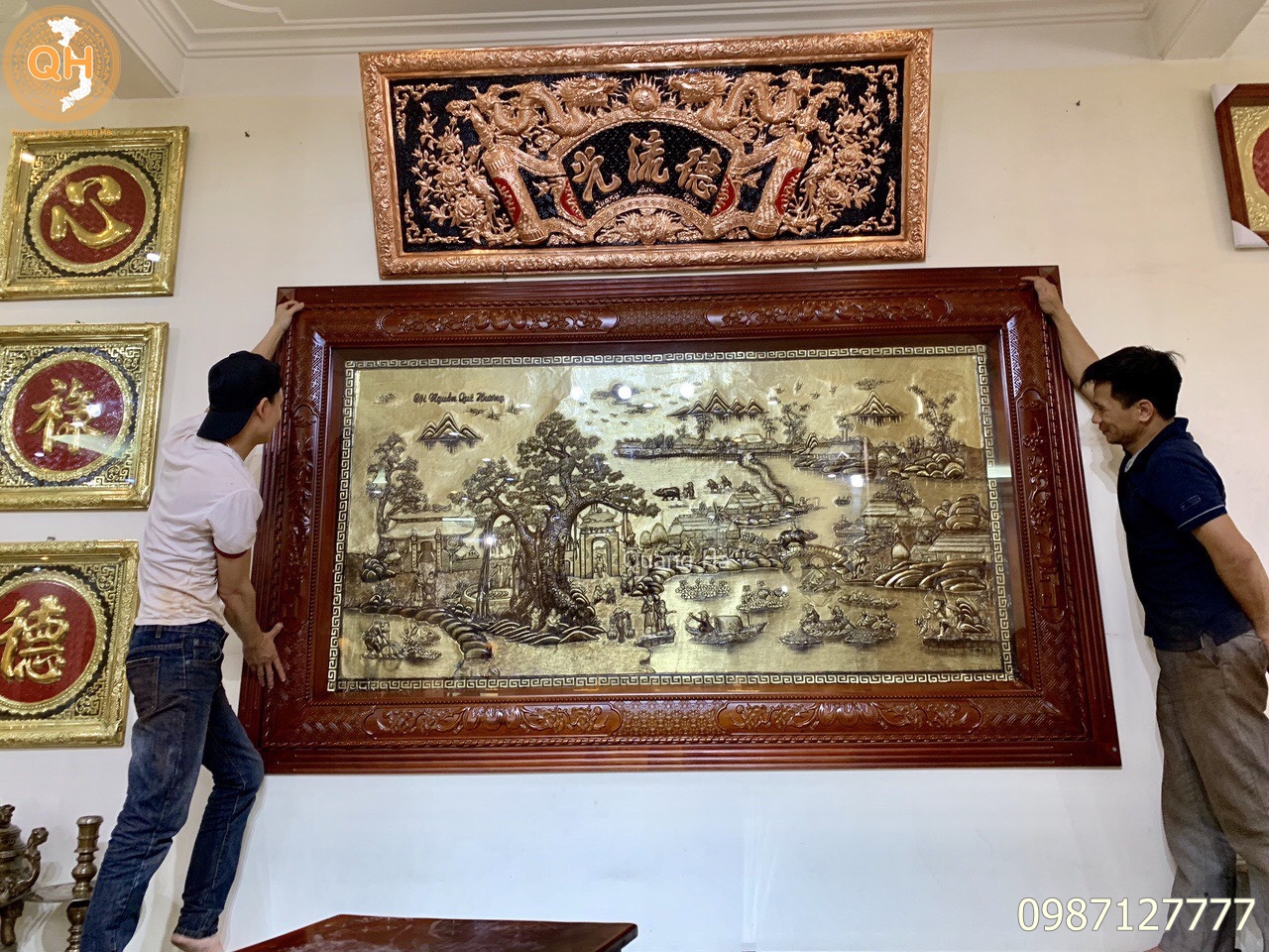 Chúng tôi nhận làm tranh theo kích thước yêu cầu của quý khách hàng. Nhận mạ vàng, dát vàng 9999 lên bề mặt sản phẩm theo yêu cầu.