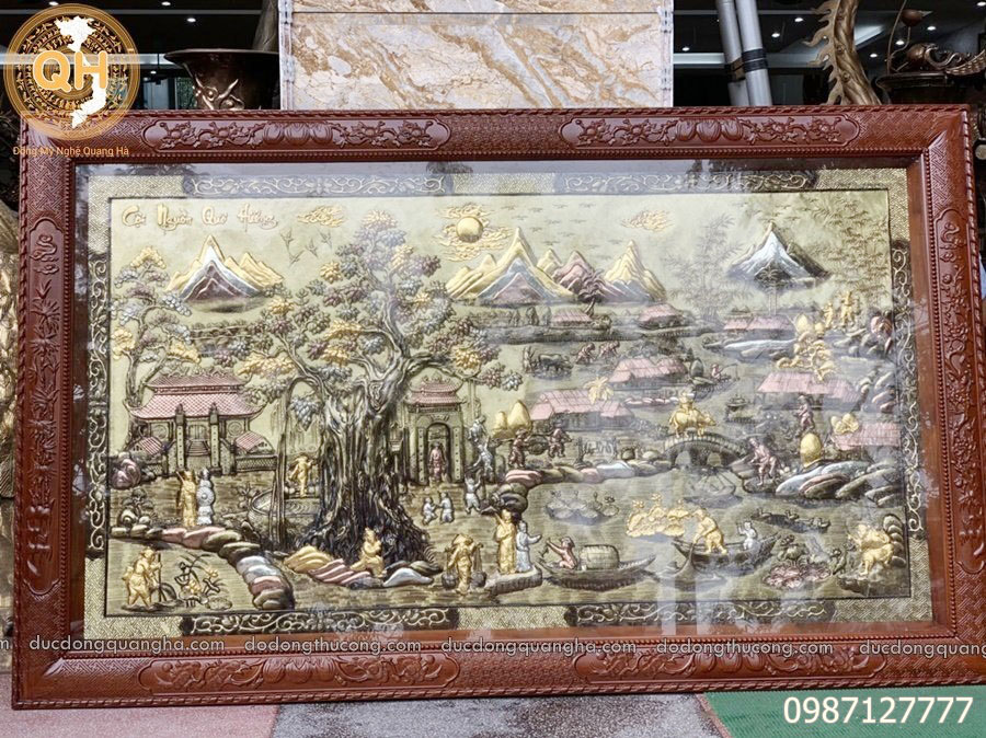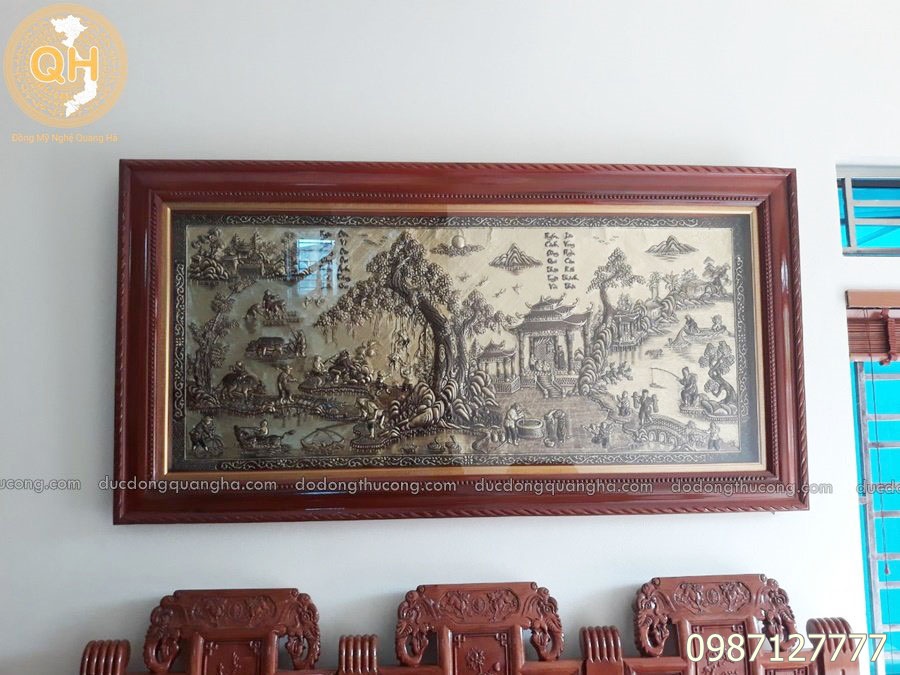 Loại khung thứ 2 cao cấp hơn là khung bằng đồng, các cạnh của khung chạm trổ họa tiết đẹp, có thể nói dòng khung đồng này đảm bảo bức tranh đồng mãi bền theo thời gian.