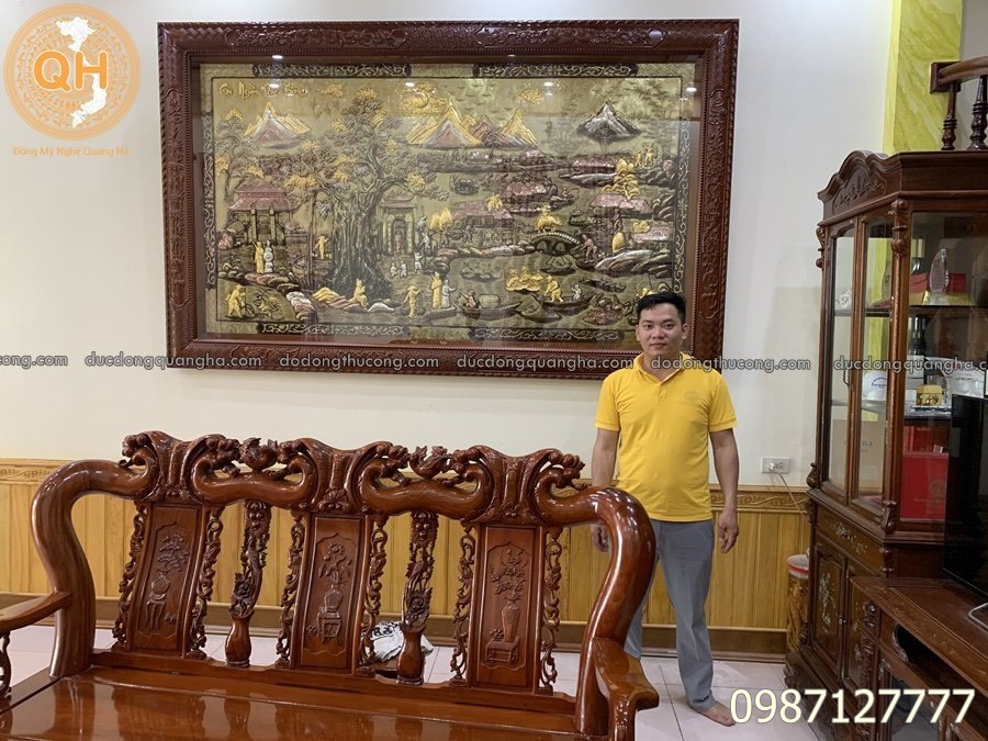 Chất liệu: Bức tranh được chạm thủ công bằng tấm đồng theo khổ (đồng đỏ hoặc đồng vàng) dày từ 5rem, 8rem đến 1ly2 theo yêu cầu của quý khách hàng.