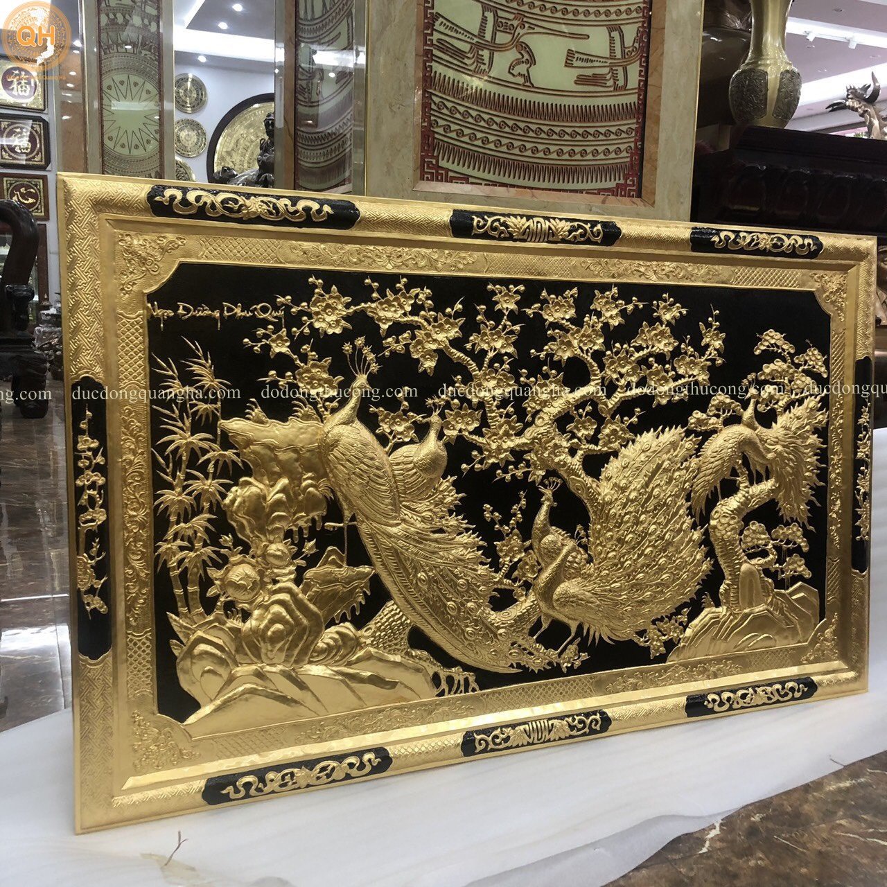 Chúng tôi nhận làm tranh theo kích thước yêu cầu của quý khách hàng. Nhận mạ vàng, dát vàng 9999 lên bề mặt sản phẩm theo yêu cầu.