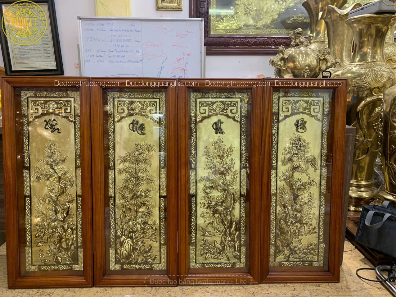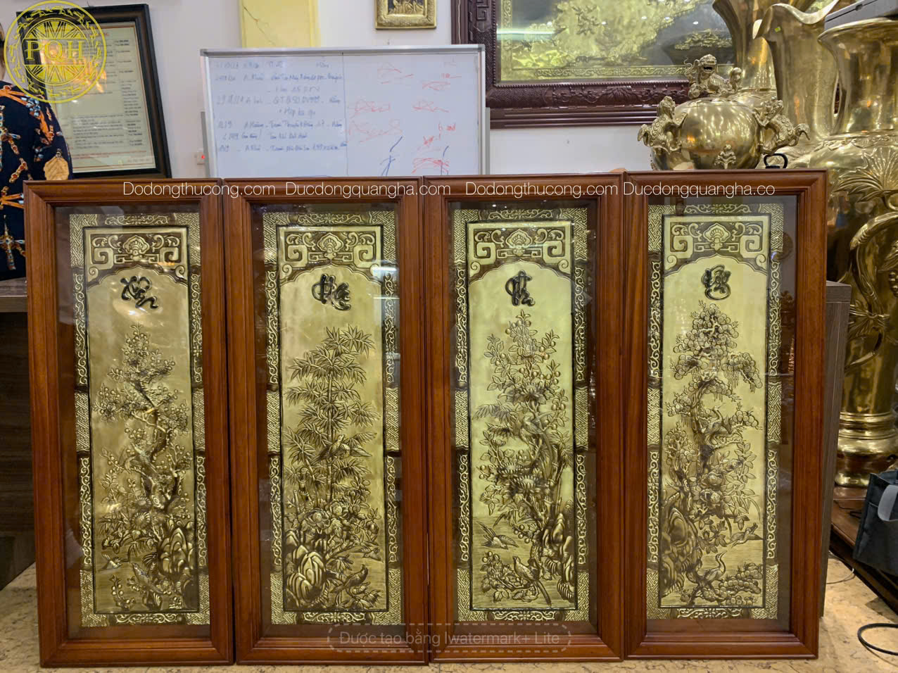 Tên sản phẩm : Tranh tứ quý khung gỗ gụ và liền tấm đồng