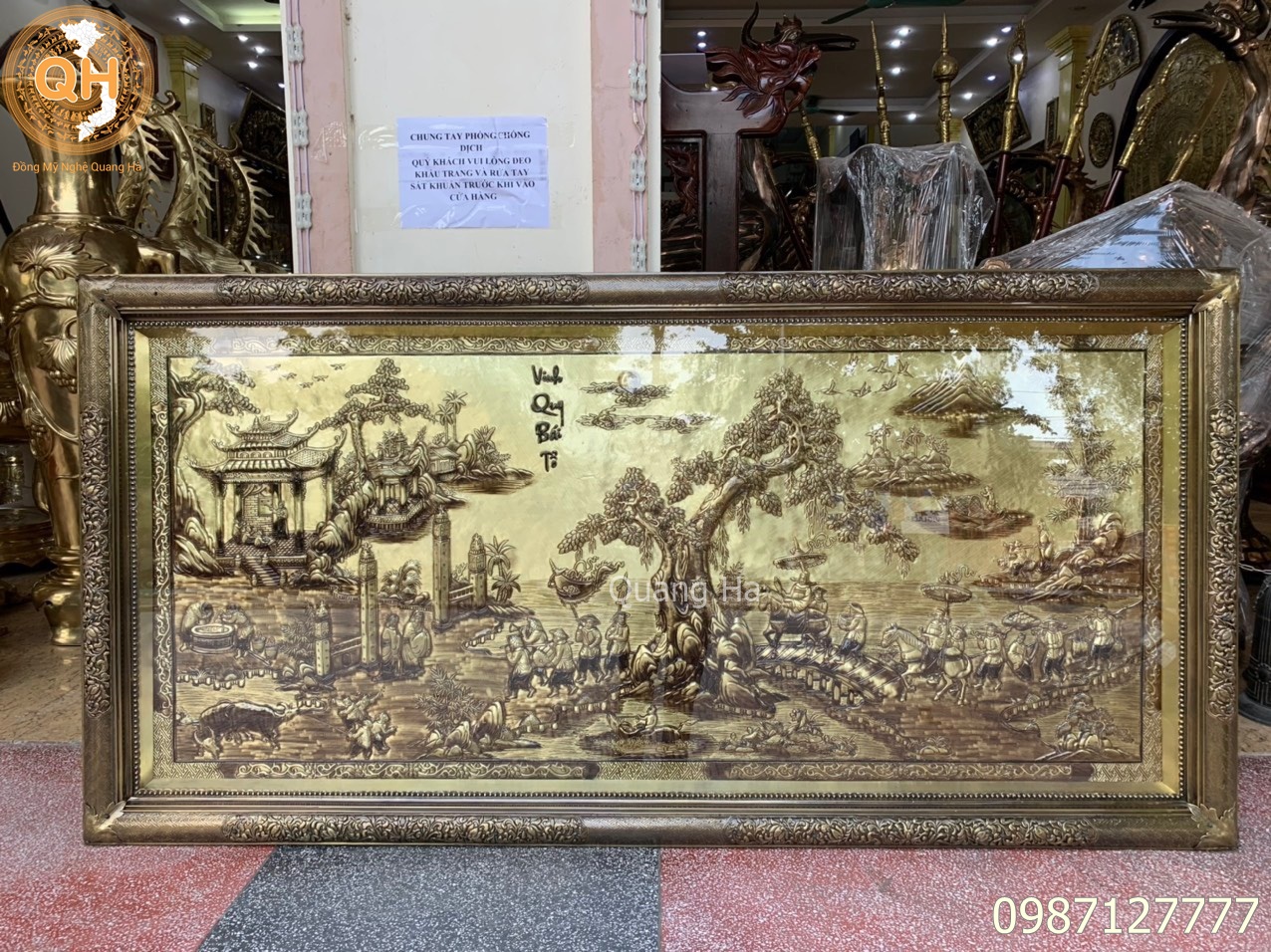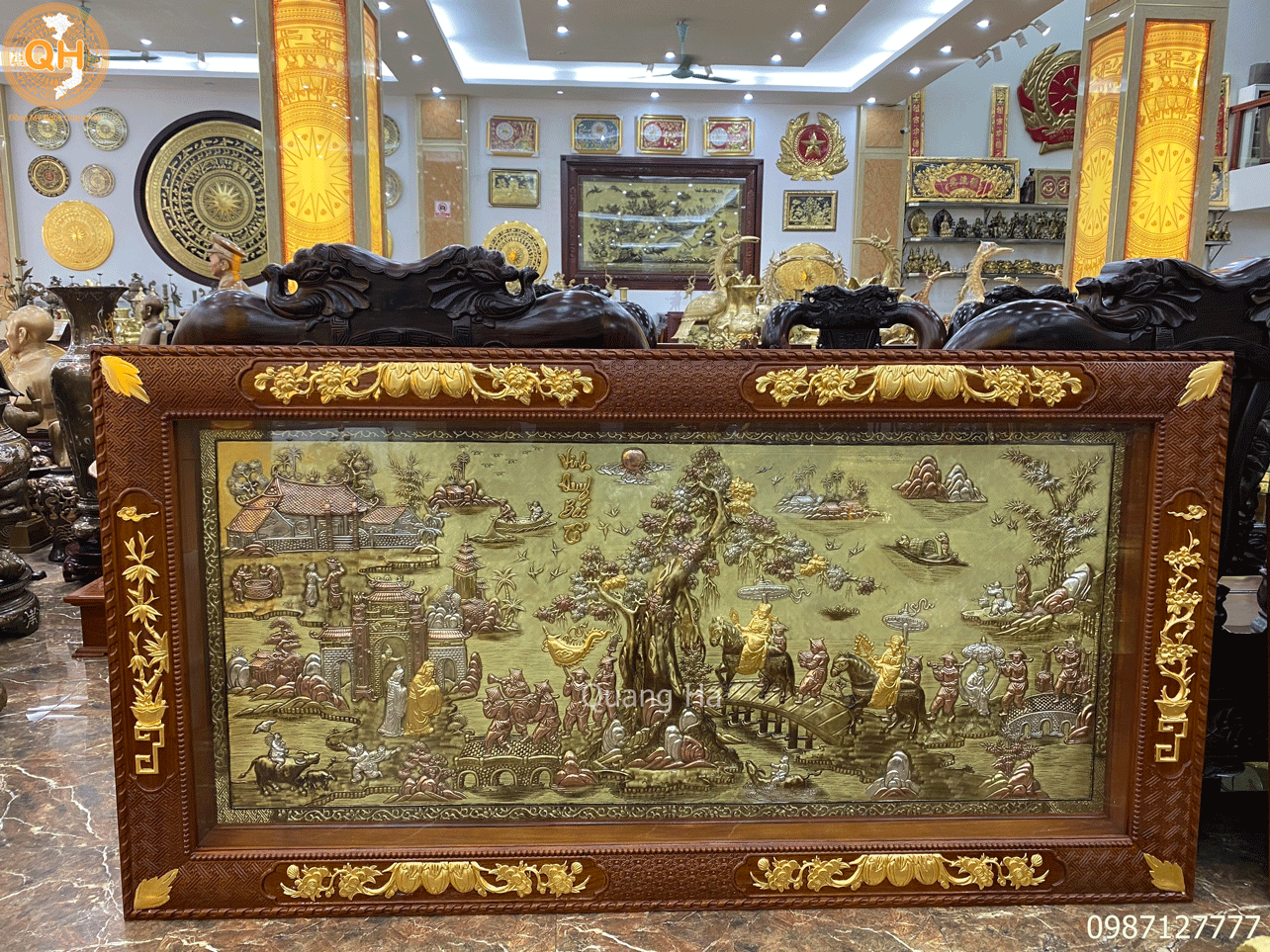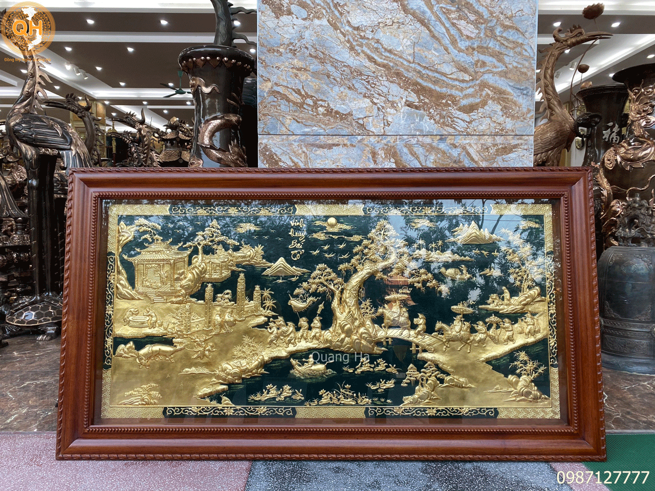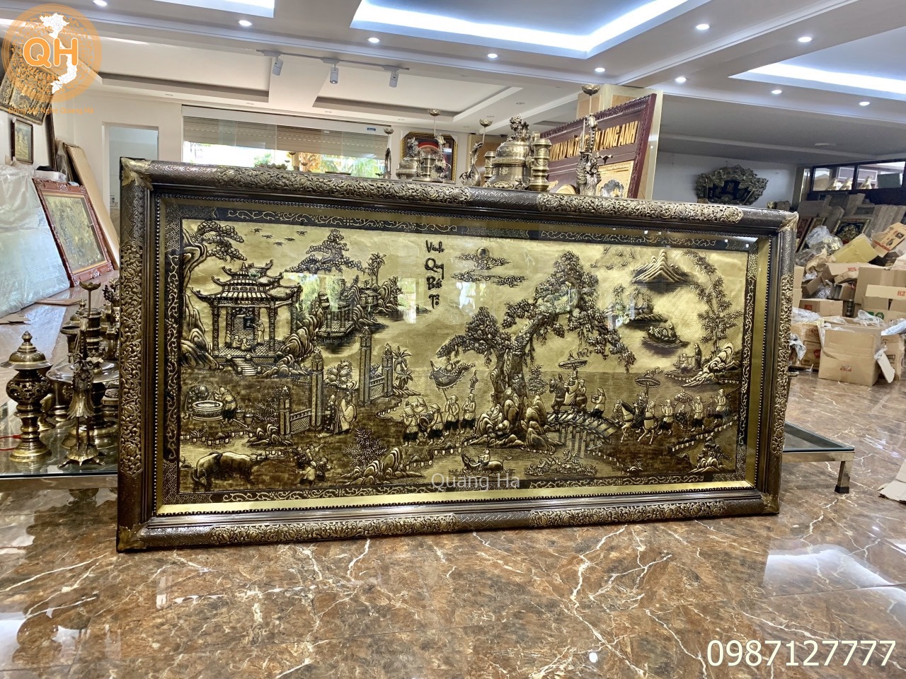 Loại khung thứ 2 cao cấp hơn là khung bằng đồng, các cạnh của khung chạm trổ họa tiết đẹp, có thể nói dòng khung đồng này đảm bảo bức tranh đồng mãi bền theo thời gian.