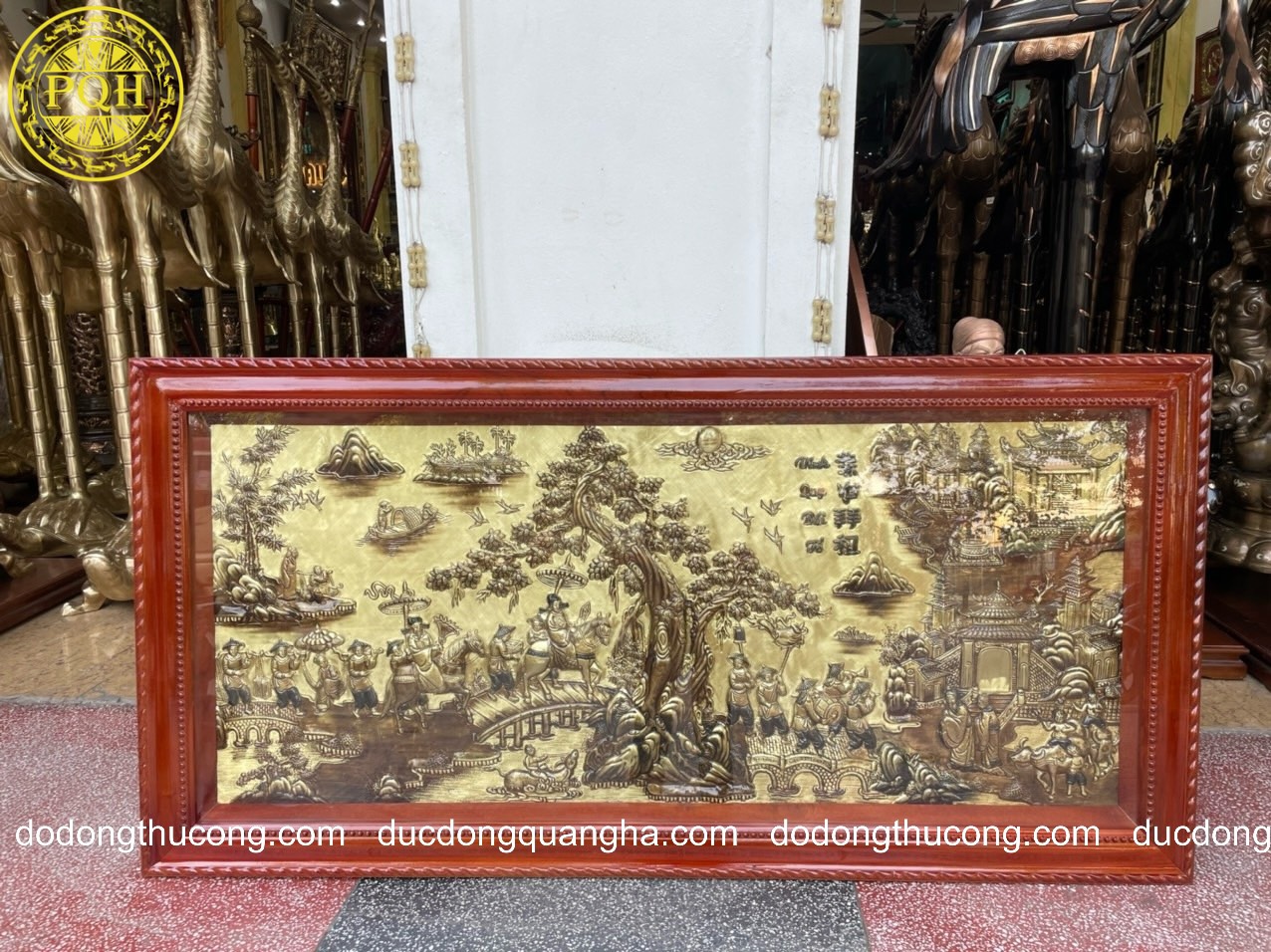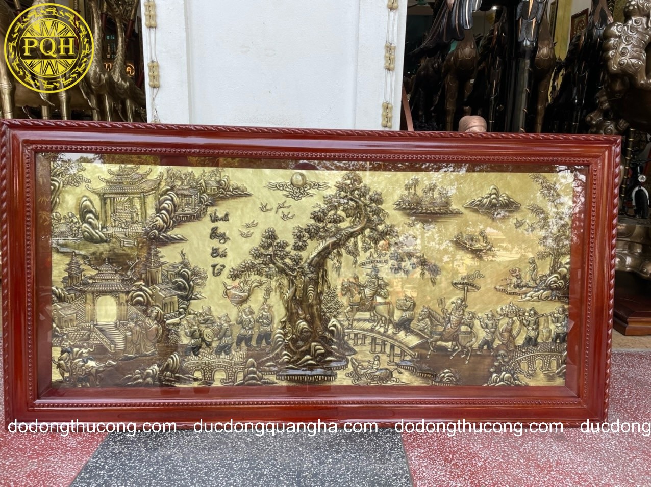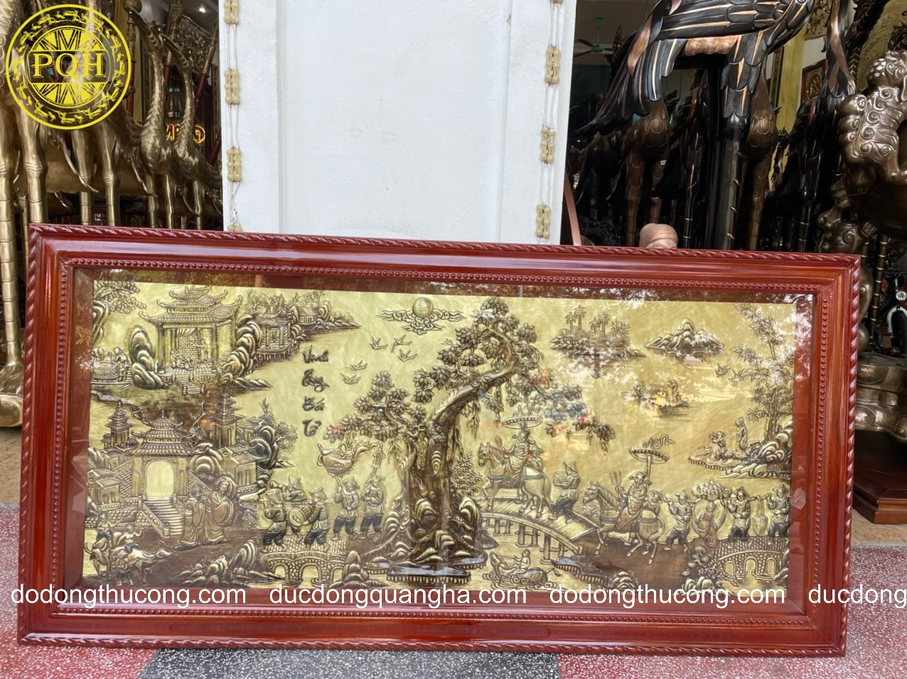 Chất liệu: Bức tranh được chạm thủ công bằng tấm đồng theo khổ (đồng đỏ hoặc đồng vàng) dày từ 5rem, 8rem đến 1ly2 theo yêu cầu của quý khách hàng.
