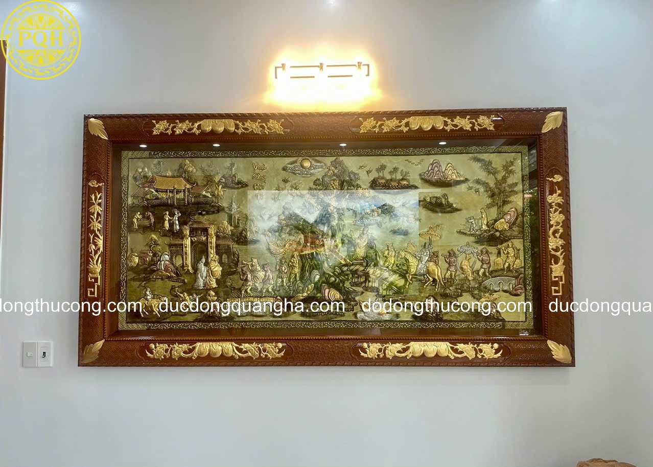 Chất liệu: Bức tranh được chạm thủ công bằng tấm đồng theo khổ (đồng đỏ hoặc đồng vàng) dày từ 5rem, 8rem đến 1ly2 theo yêu cầu của quý khách hàng.