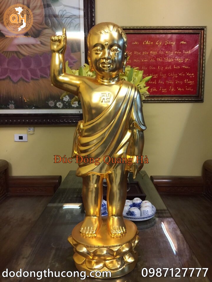 Chất liệu : Đồng đỏ nguyên chất đúc thủ công thiếp vàng 9999
