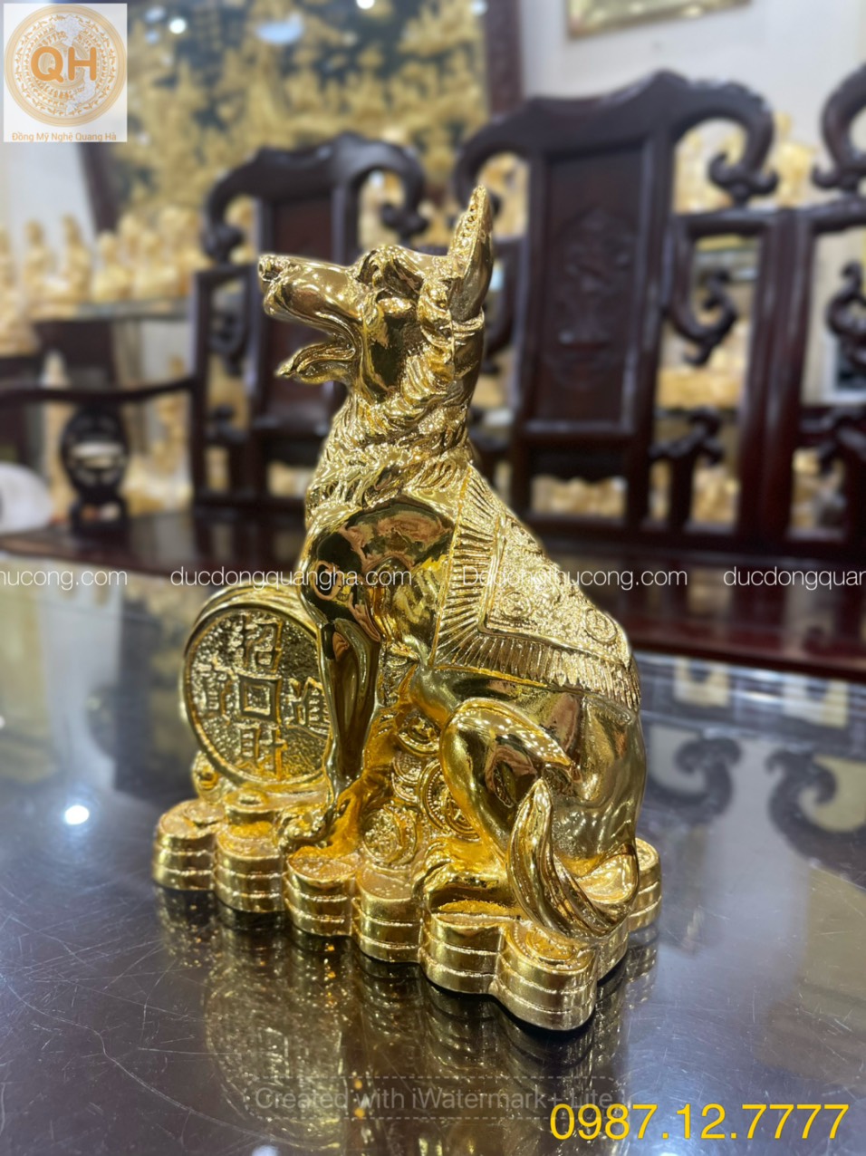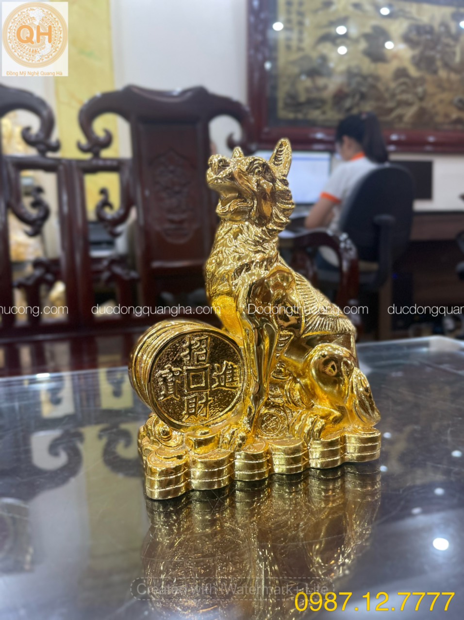 Tên gọi sản phẩm: TƯỢNG CHÓ ÔM ĐỒNG XU MẠ VÀNG