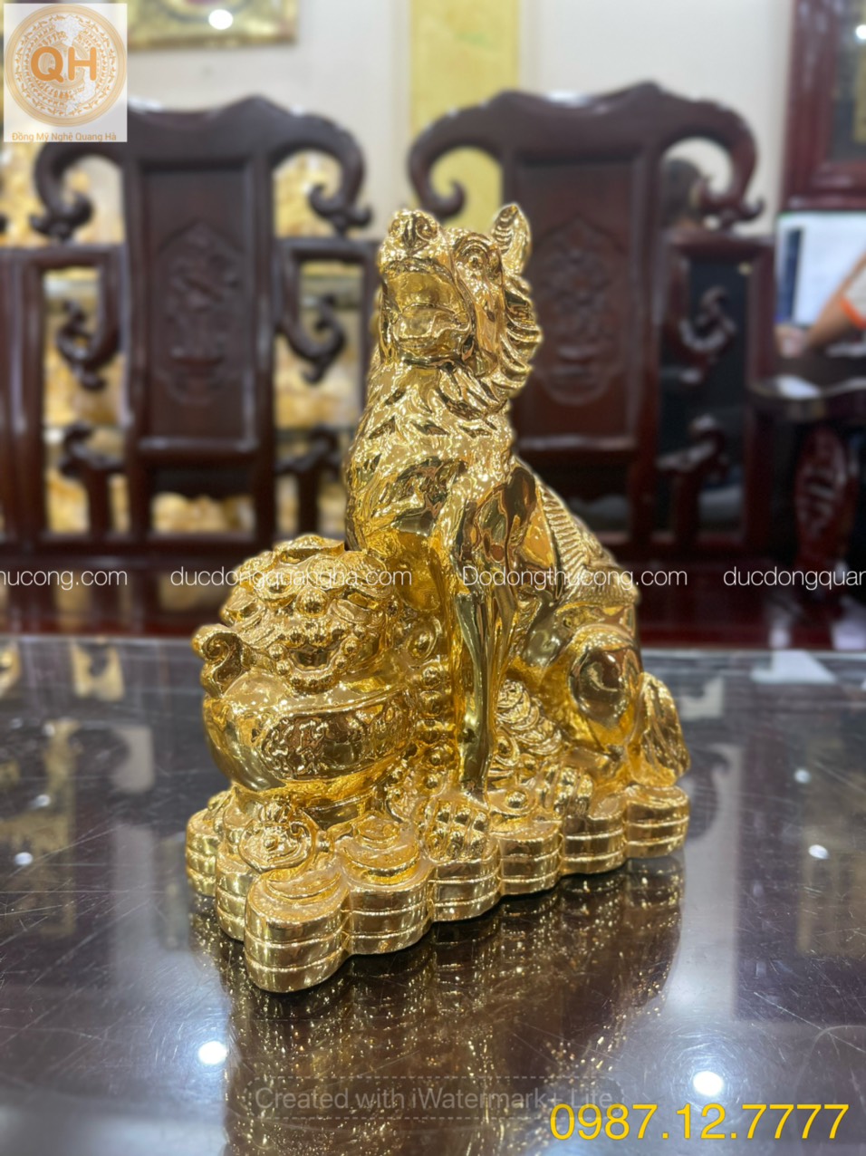 Chất liệu: Đồng vàng nguyên chất đúc liền khối và mạ vàng bên ngoài