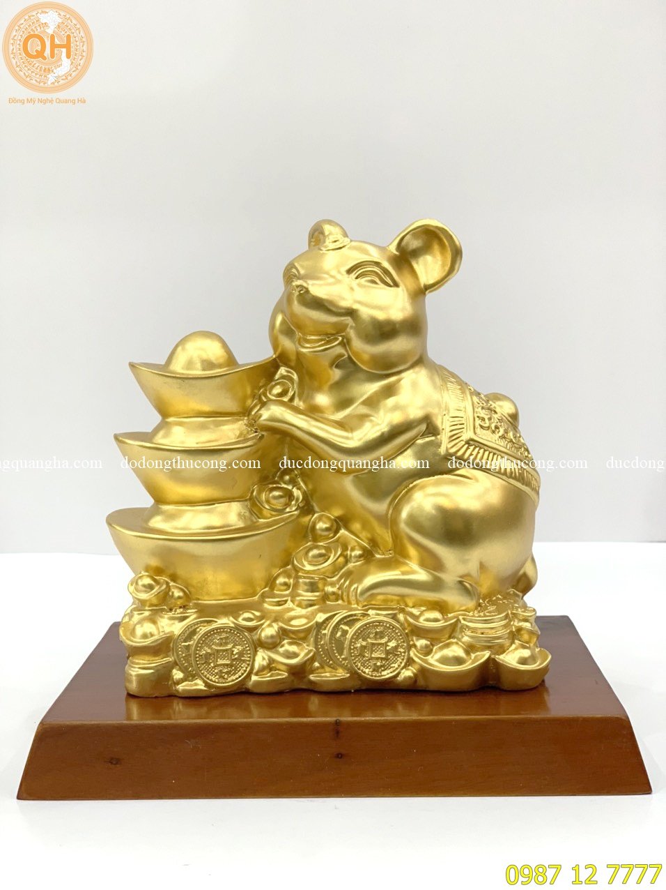 Tên gọi sản phẩm: Tượng Chuột Ôm Thỏi Vàng Thếp Vàng 9999