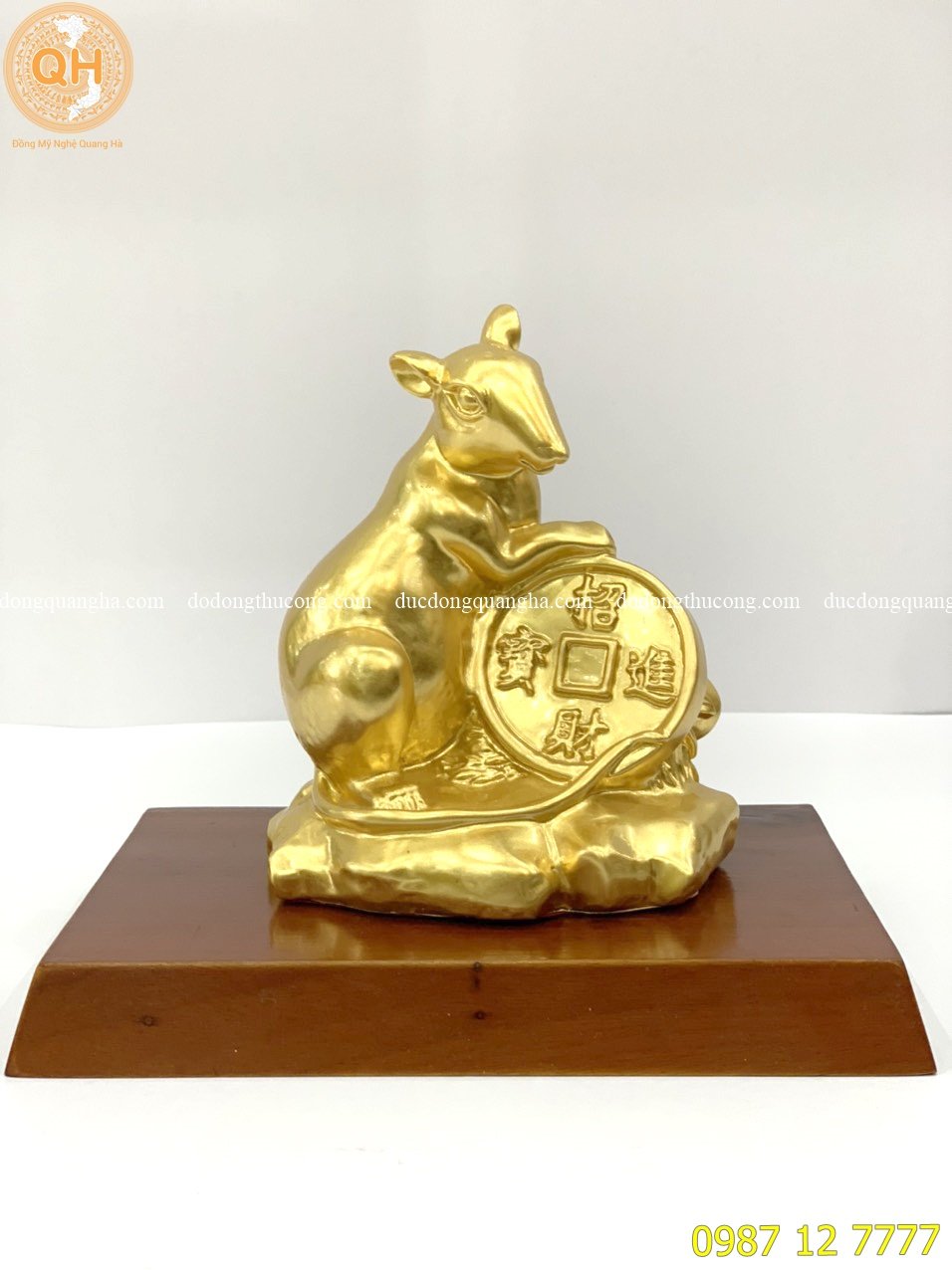 Tên gọi sản phẩm: Tượng Chuột phong thủy ôm tiền xu thếp vàng 9999