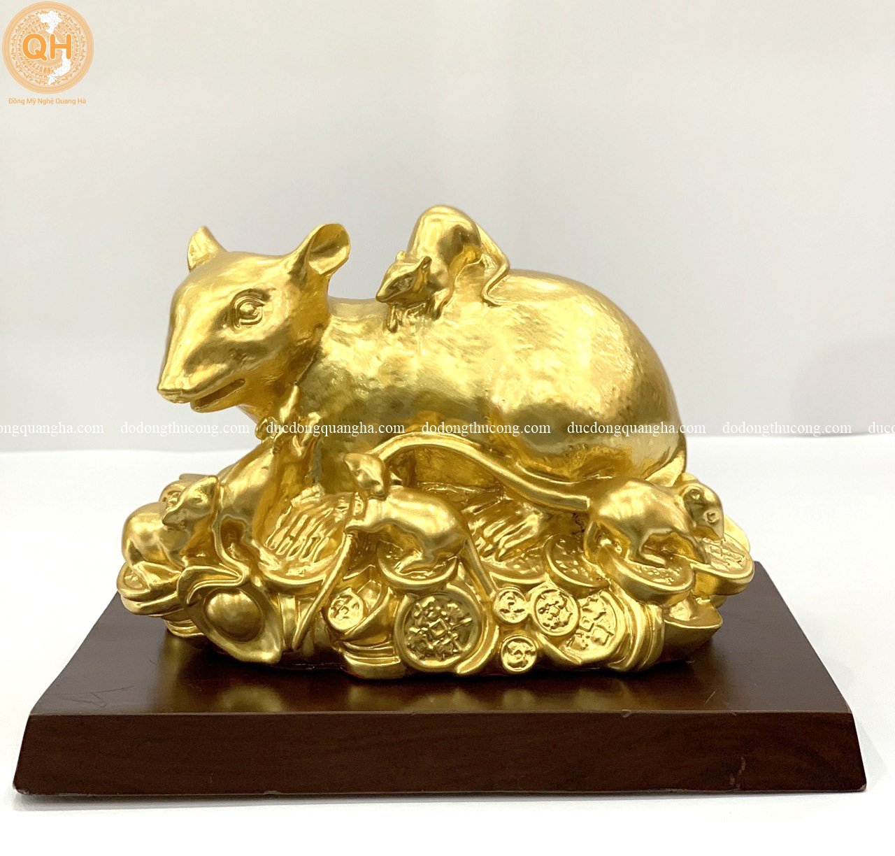 Tên gọi sản phẩm: Tượng Đàn Chuột Nằm Trên Tiền Thếp Vàng 9999