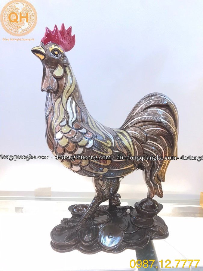 Tên gọi sản phẩm: TƯỢNG GÀ ĐỒNG ĐỎ KHẢM NGŨ SẮC