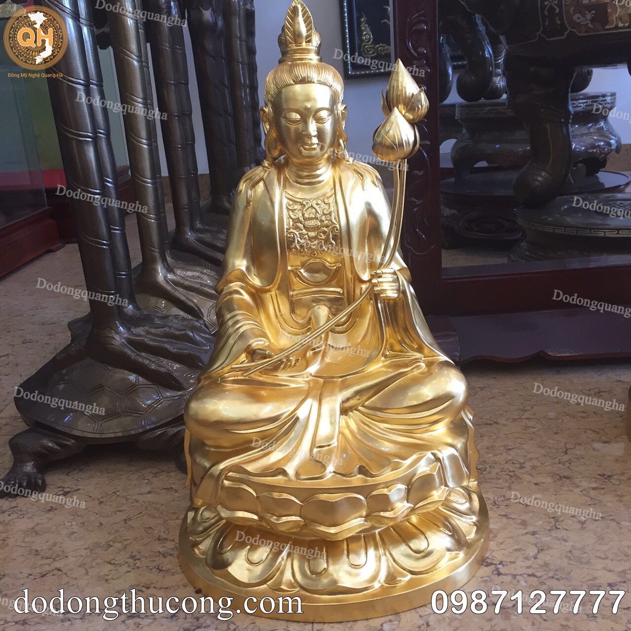 Chất liệu: Đồng đỏ nguyên chất đúc thủ công liền khối thiếp vàng 9999