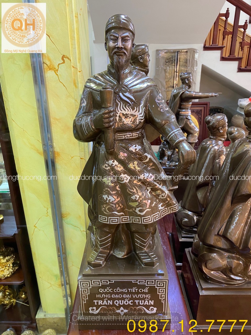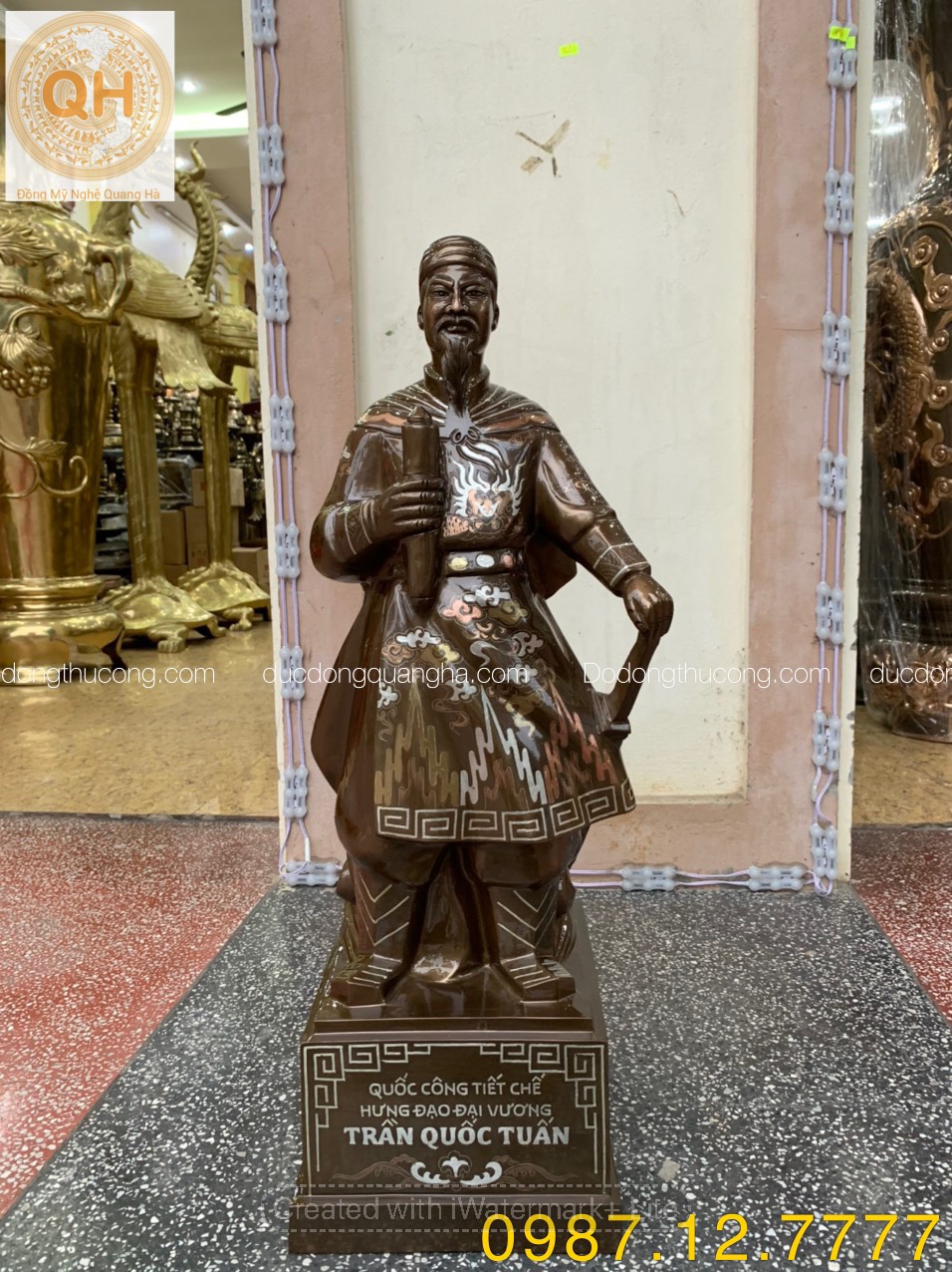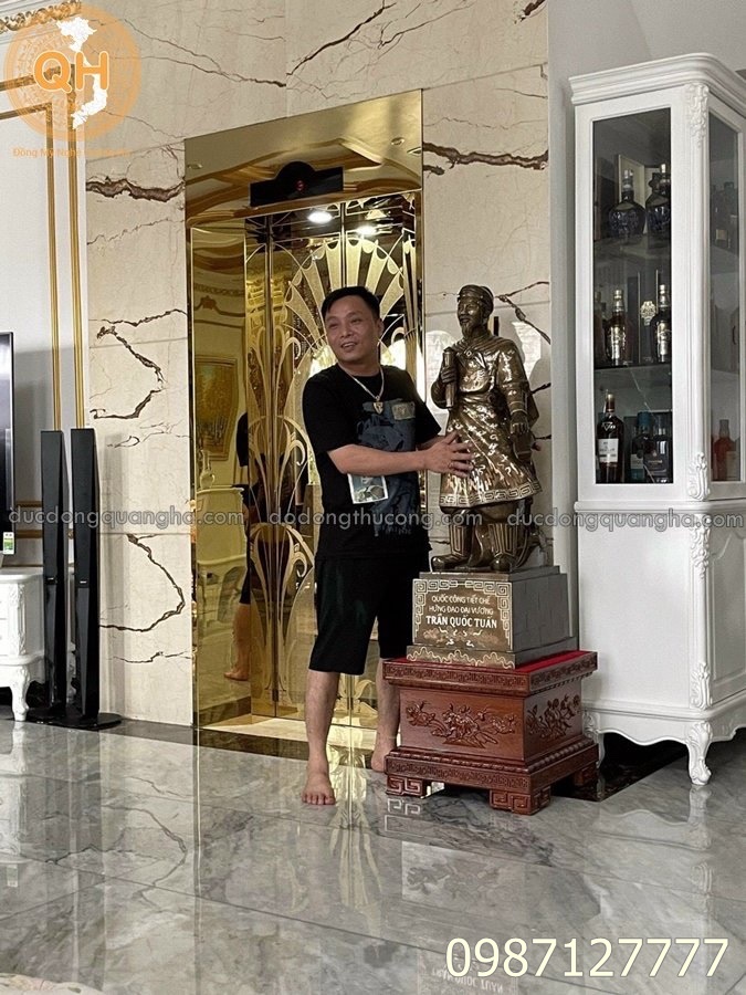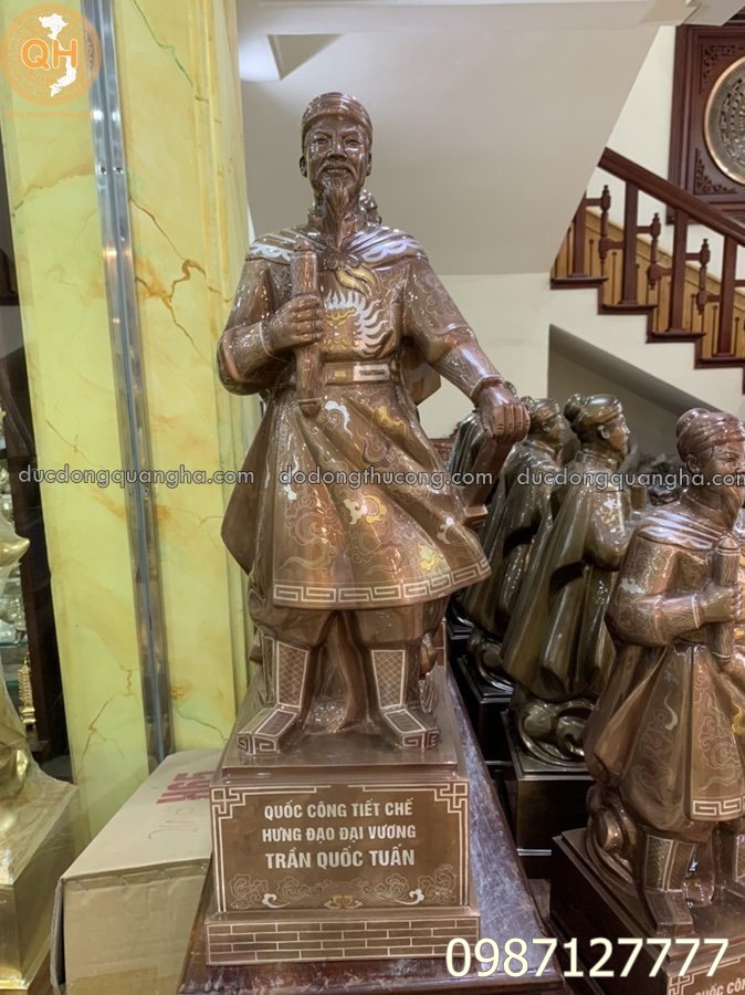 Tên gọi sản phẩm: Tượng trần hưng đạo đúc đồng đỏ ( khảm tam khí - dát vàng 9999 - khảm ngũ sắc )